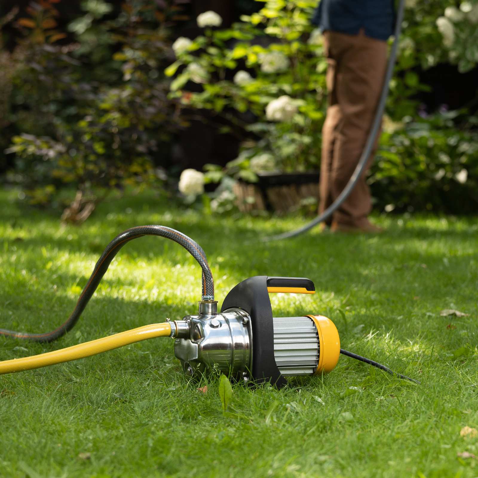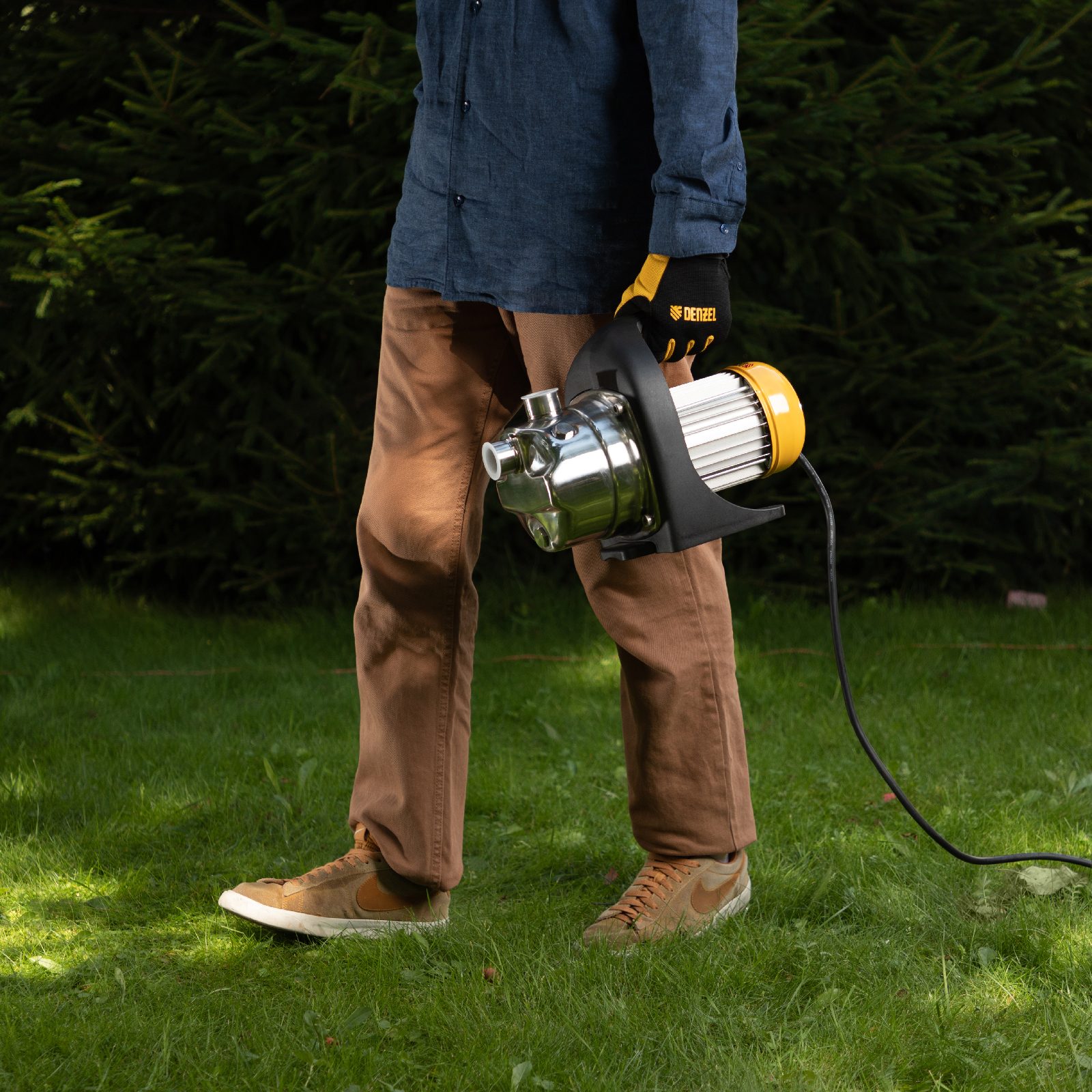 - Комфортное перемещение по участку — насос весом 8,4 кг снабжен удобной ручкой.