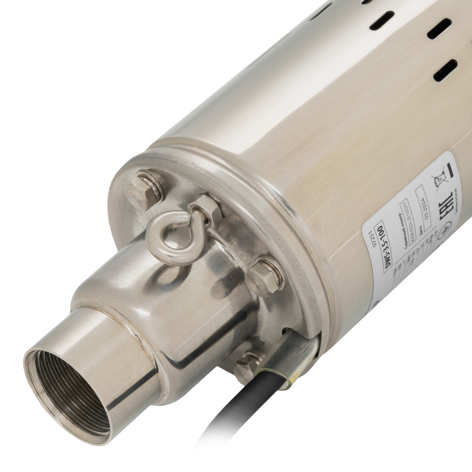 - Простая установка — в верхней части корпуса имеются проушины для закрепления троса, при помощи которого насос погружается в воду.