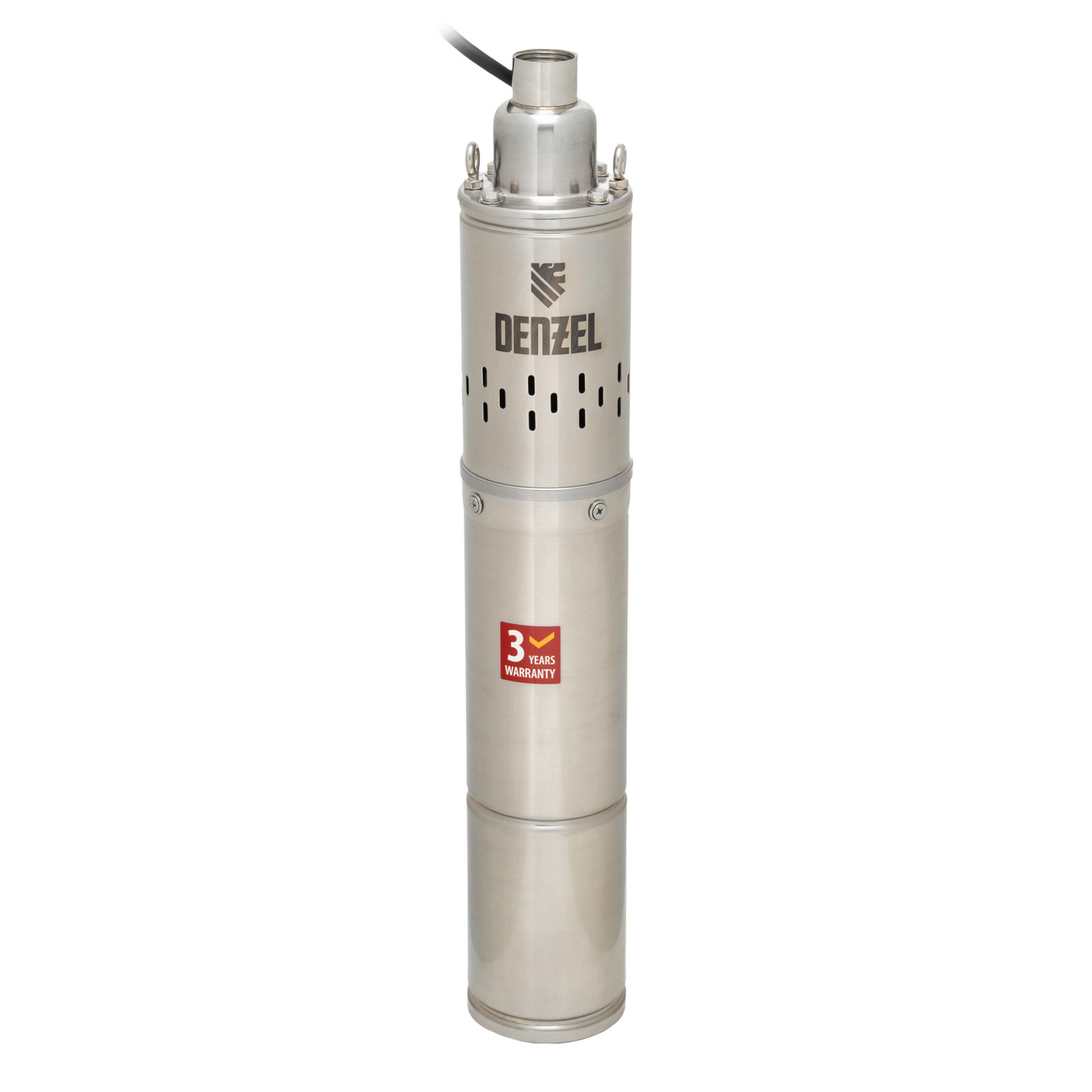 Скважинный насос Denzel DWS-4-100 97252 производительностью 1700 л/ч, диаметром 4″ и мощностью 800 Вт обеспечивает напор до 100 м. Предназначен для подачи чистой воды из скважин, колодцев, систем водоснабжения, различных накопителей и пресных водоемов с глубины до 17 м (с наращиванием кабеля — до 80 м). Винтовая насосная часть обеспечивает напор, достаточный не только для полива приусадебных участков, но и для организации бытового водоснабжения.