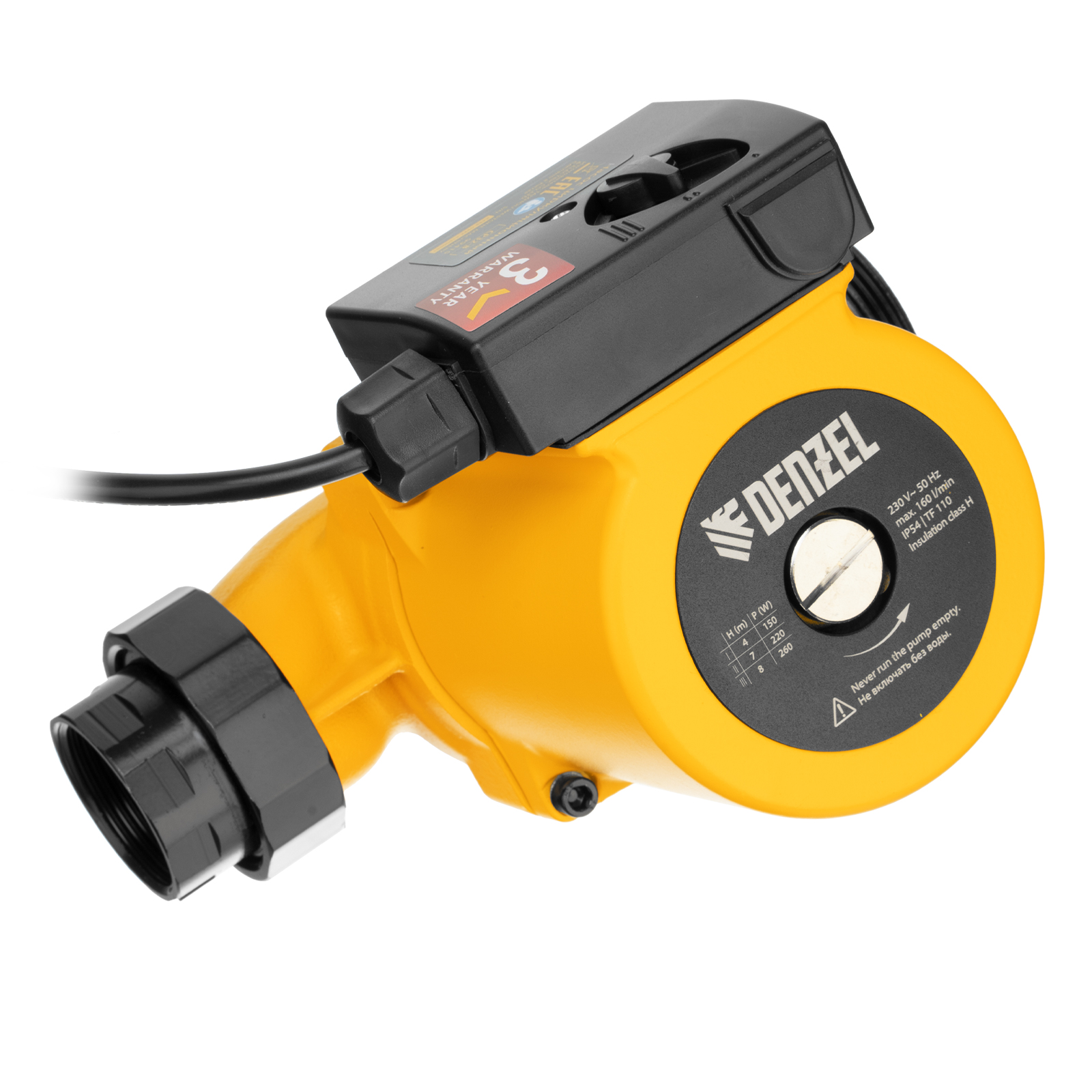 Циркуляционный насос Denzel CP32-8 99415 с кабелем длиной 1 м имеет монтажную длину 180 мм и обеспечивает напор до 8 м, максимальный объем перекачиваемой жидкости составляет 160 л/мин. Устройство обеспечивает непрерывное движение горячей воды температурой до 110 °C по трубопроводу. Насос позволит организовать эффективную систему теплоснабжения загородного дома.