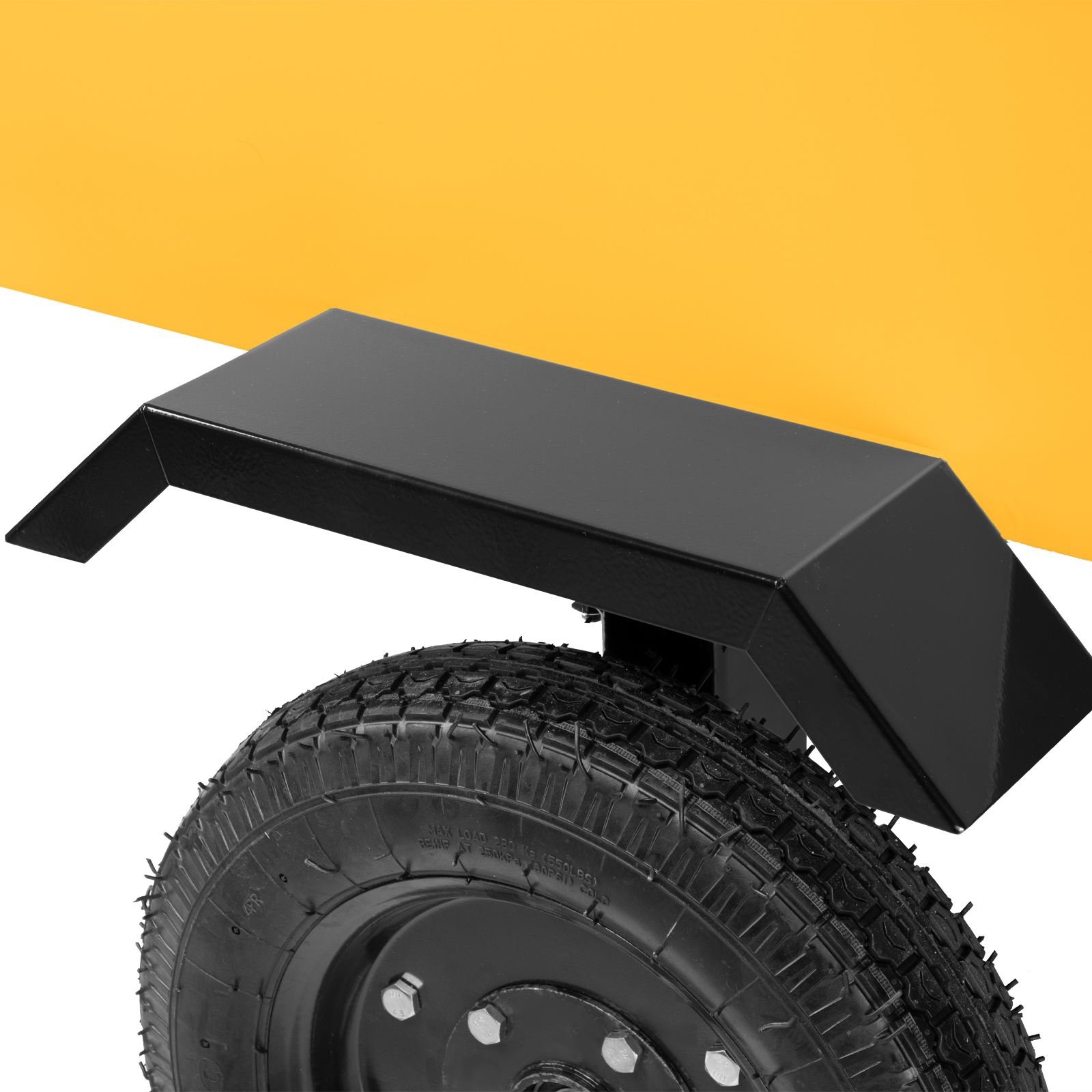 Прицеп Denzel TT-500 59950 с оцинкованным кузовом и регулируемой сцепкой, с колесами размером 4.00-10, в упаковке, имеет общую грузоподъемность 500 кг. Позволяет использовать мотоблок в качестве транспортного средства, а также перевозить различные грузы. Прицеп самосвального типа с функцией опрокидывания удобен для выгрузки. Приспособление пригодится в сельском хозяйстве и коммунальной сфере.