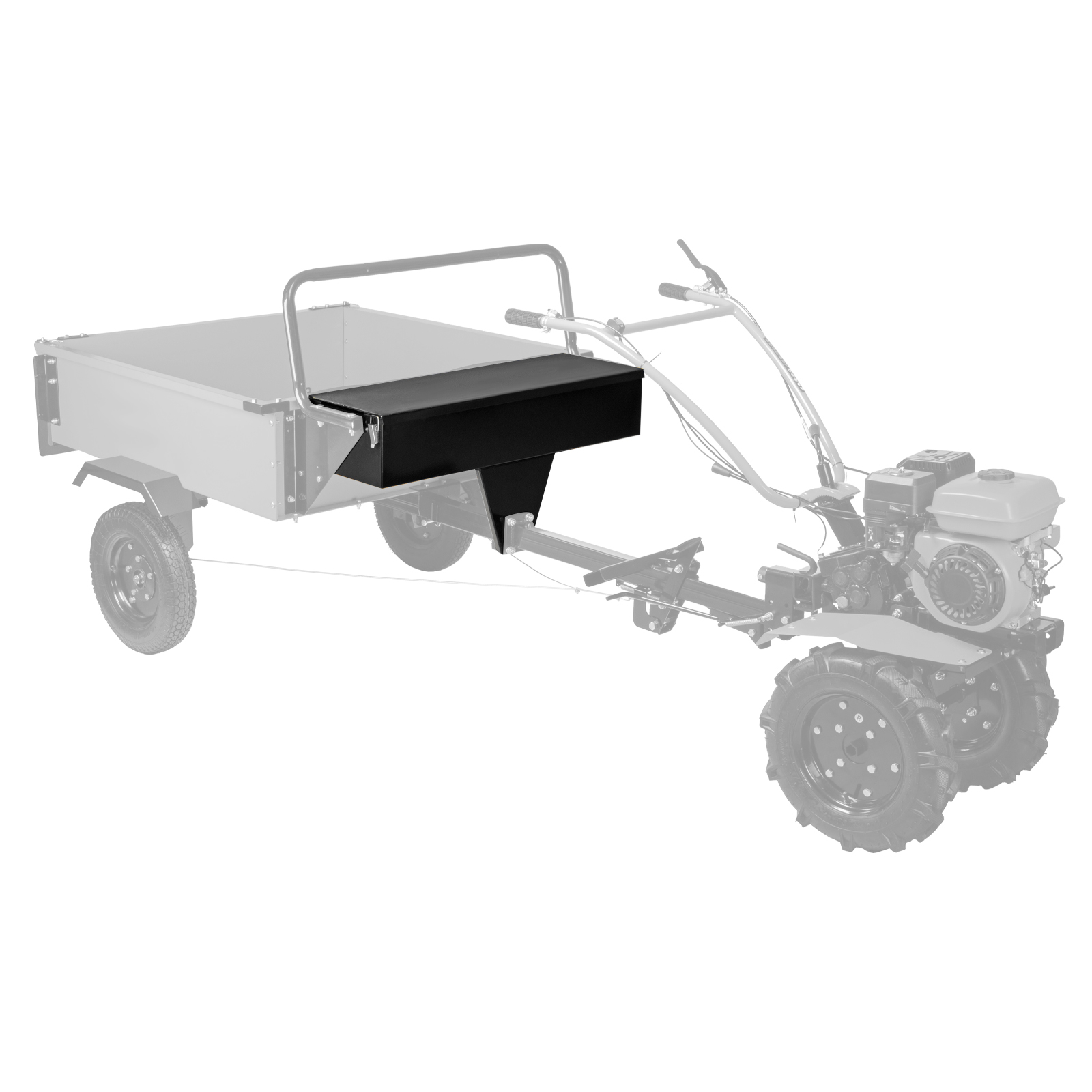 Ящик-сиденье Denzel B-500 59951 устанавливается на мотоблочный прицеп Denzel 59950. Пользователь может не только с комфортом расположиться во время управления мотоблоком, но и разместить в ящике инструменты, оснастку и различные негабаритные предметы.
