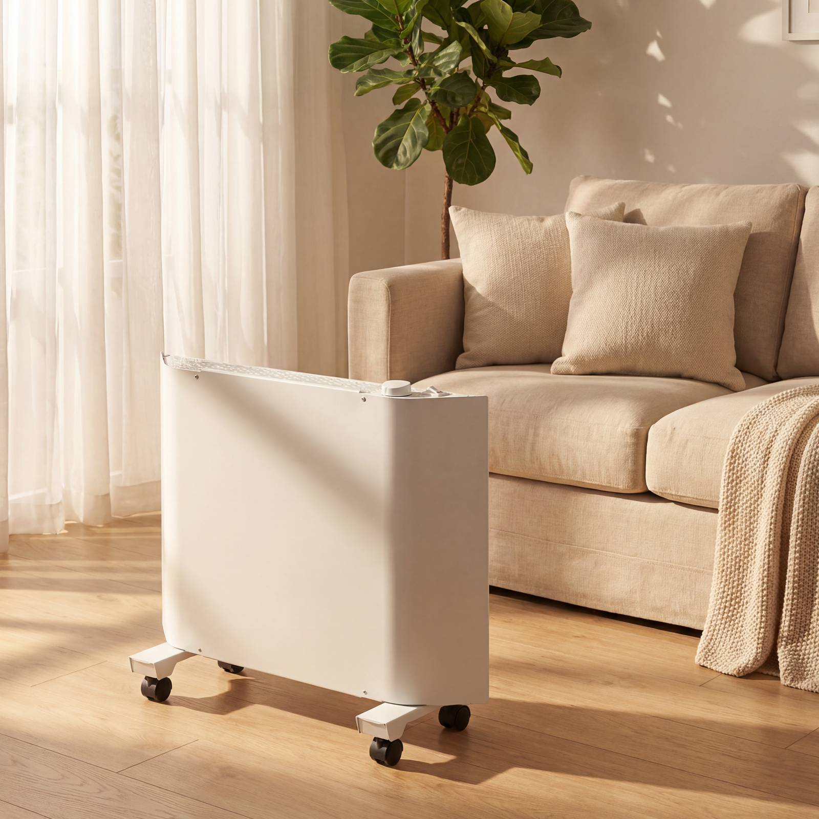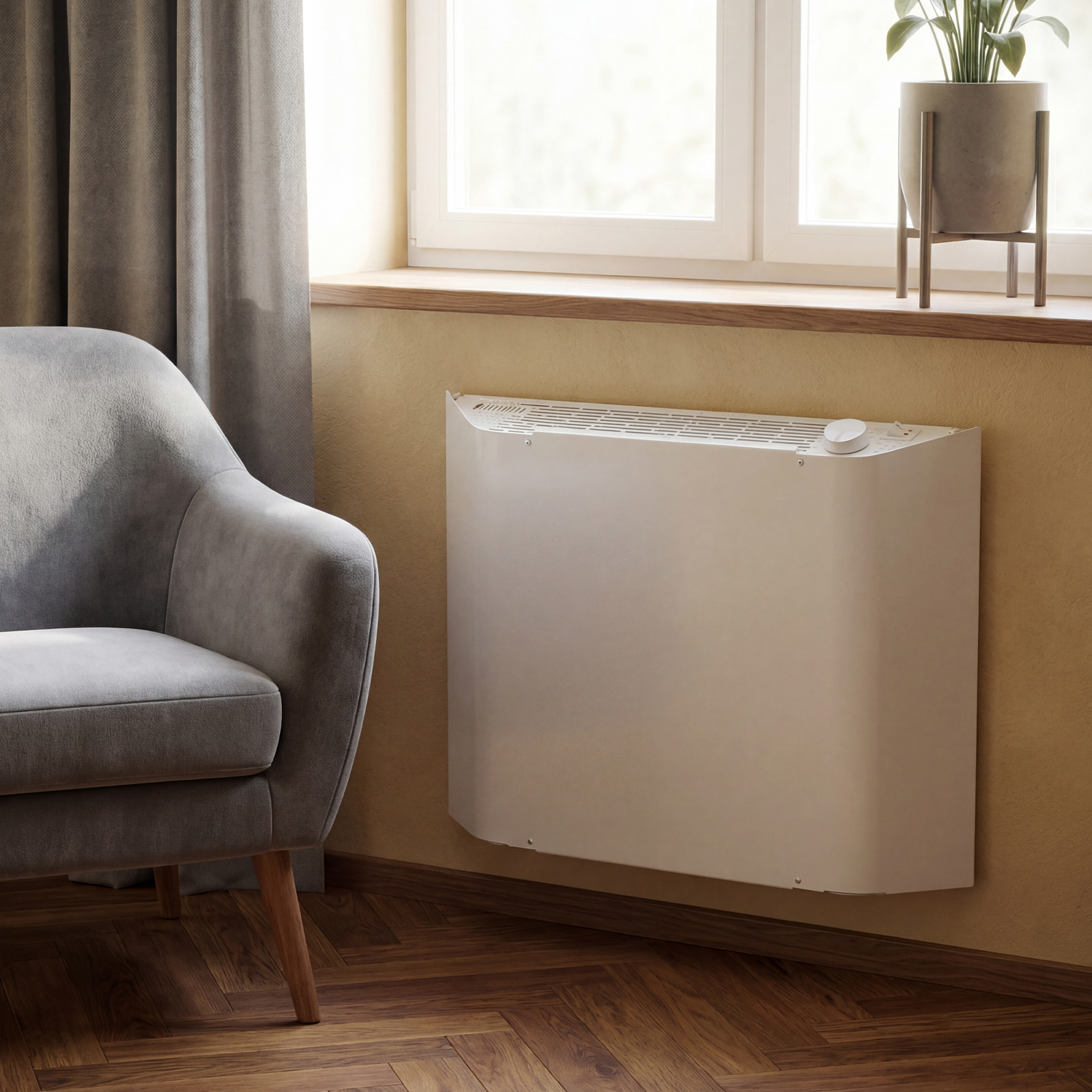 - Автономная работа — термостат автоматически включает и отключает конвектор, поддерживая заданную температуру в помещении.