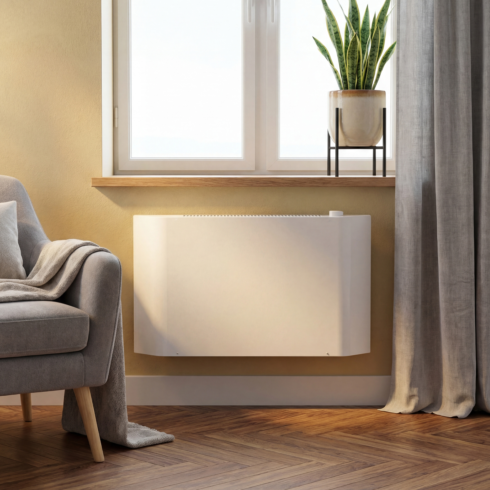 - Автономная работа — термостат автоматически включает и отключает конвектор, поддерживая заданную температуру в помещении.