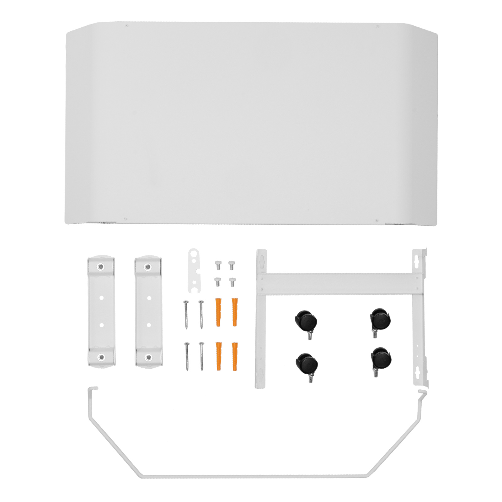 - Напольная или настенная установка — в комплект поставки включена цельнометаллическая крепежная рамка для стены, а также стальные ножки с колесами.