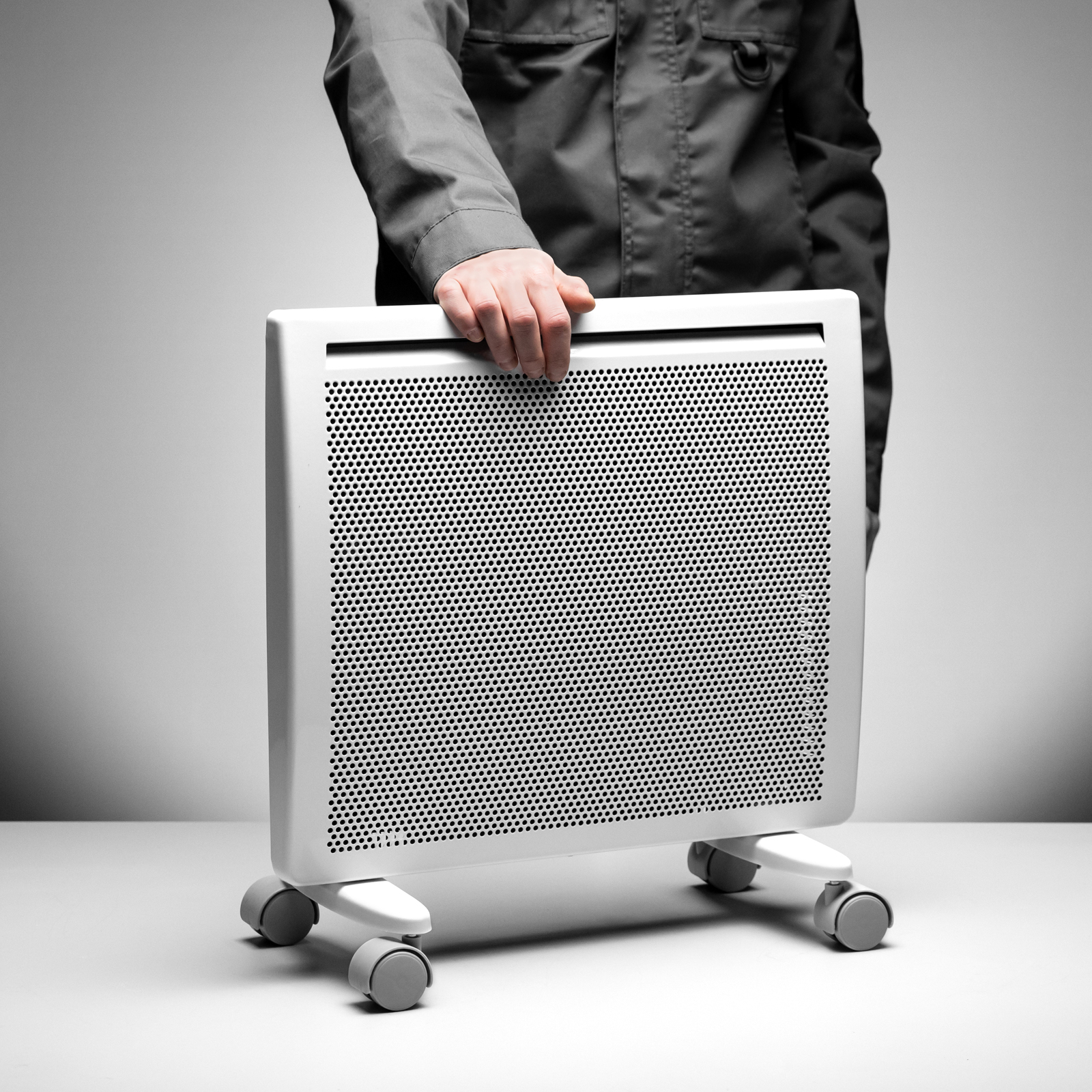 - Высокая энергоэффективность — гибридный нагревательный элемент излучает инфракрасное тепло и одновременно обеспечивает конвекцию воздуха, что позволяет прогревать помещение заметно быстрее при тех же затратах энергии.