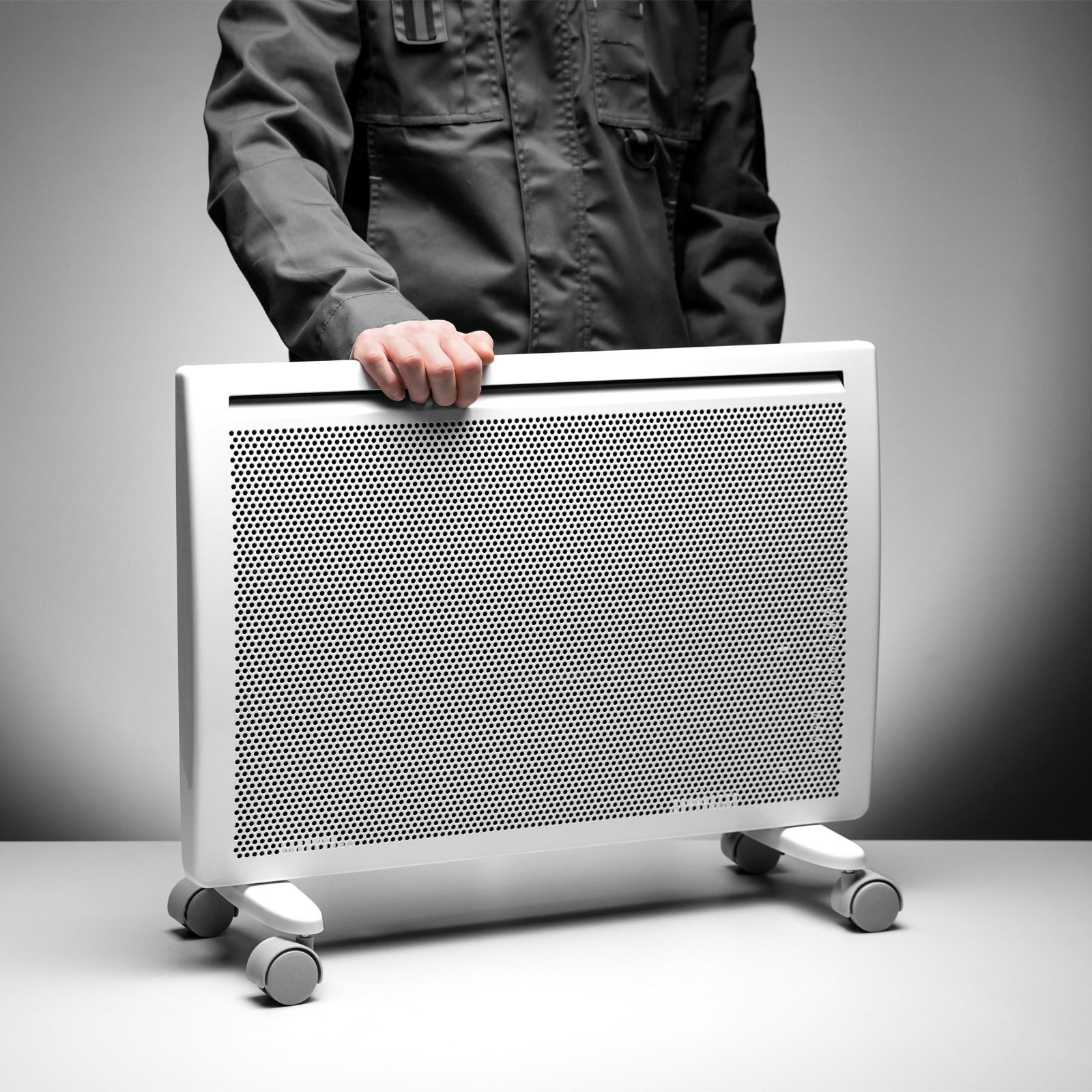 - Высокая энергоэффективность — гибридный нагревательный элемент излучает инфракрасное тепло и одновременно обеспечивает конвекцию воздуха, что позволяет прогревать помещение заметно быстрее при тех же затратах энергии.