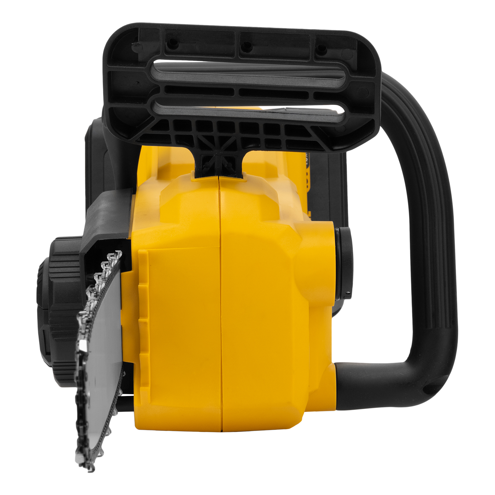 - Продольное расположение двигателя — инструмент хорошо сбалансирован, при работе его не ведет в стороны, что позволяет выполнять более ровные и чистые надпилы, а также работать в ограниченном пространстве.