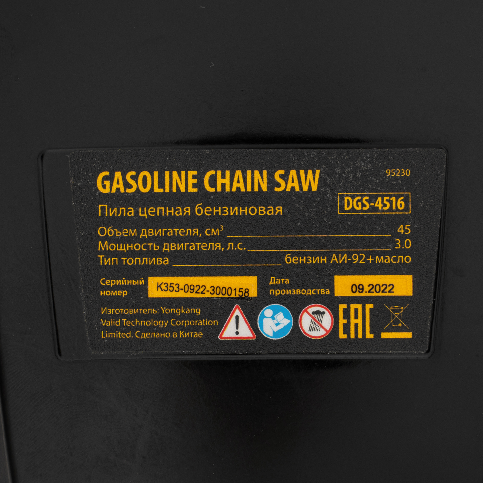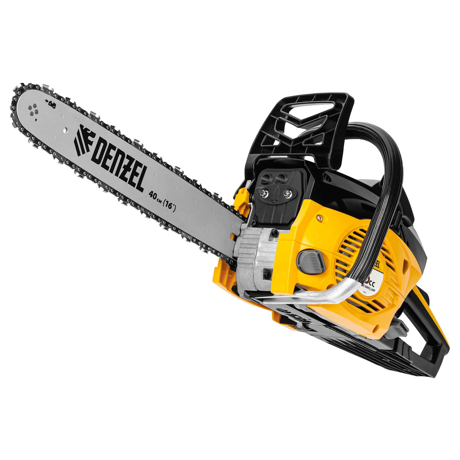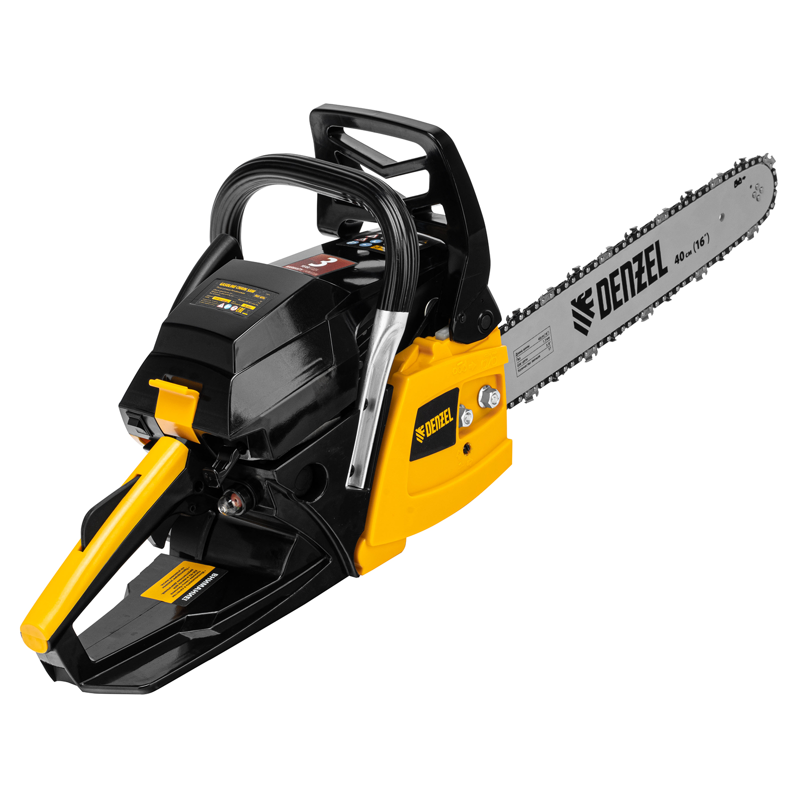 Пила цепная бензиновая Denzel DGS-4516 95230 с двигателем объемом 45 см3 и мощностью 3,0 л.с. поставляется с шиной длиной 40 см и цепью с 57 звеньями (шаг 3/8″, паз 1,3 мм). Это бытовой инструмент для заготовки дров, обрезки ветвей и сучьев в саду, распила древесины твердых и мягких пород. Пила выдерживает интенсивные нагрузки, используется во время строительных и ремонтных работ, будет полезна на дачном участке.