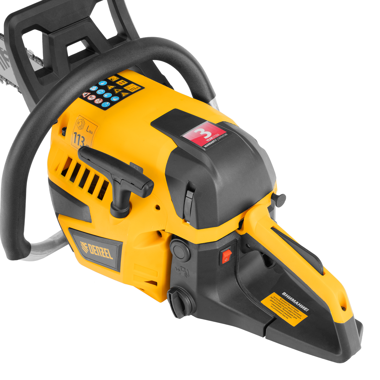 Пила цепная бензиновая Denzel DS-4516 95236 мощностью 2,5 л.с. оснащена двигателем объемом 45 см3 и поставляется с высокопроизводительной пильной гарнитурой: шиной длиной 40 см, цепью с 64 звеньями шагом 0,325" и пазом 1,5 мм. Используется для заготовки дров, распиловки древесины, при проведении ремонтных, строительных и садовых работ. Мощный и экономичный двухтактный двигатель позволяет эффективно и быстро решать поставленные задачи.