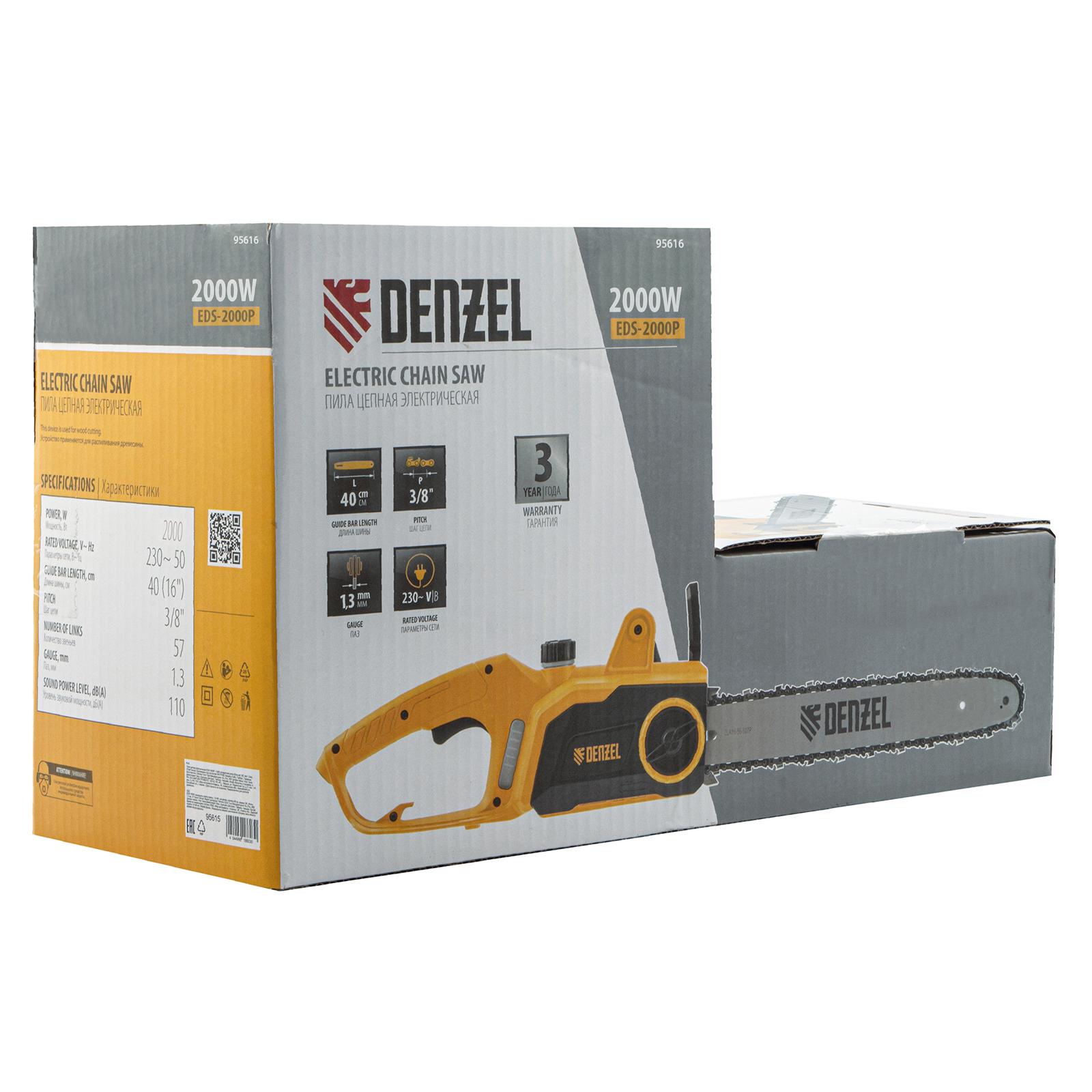Цепная электропила Denzel EDS-2000P предназначена для заготовки дров, распиливания готовых материалов, подравнивания ветвей в саду, ремонта и частного строительства. Электромотор мощностью 2 кВт и 40-сантиметровая шина с остро заточенной цепью обеспечивают эффективное решение поставленных задач.,Пила работает от электросети и не производит вредных выбросов в окружающую среду, поэтому может эксплуатироваться в закрытых помещениях, например, в частных мастерских. Процесс запуска максимально упрощен — не нужно готовить топливную смесь, достаточно подключить пилу к электросети и она будет готова к работе.