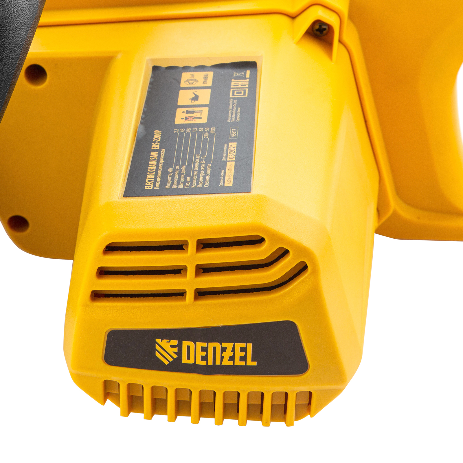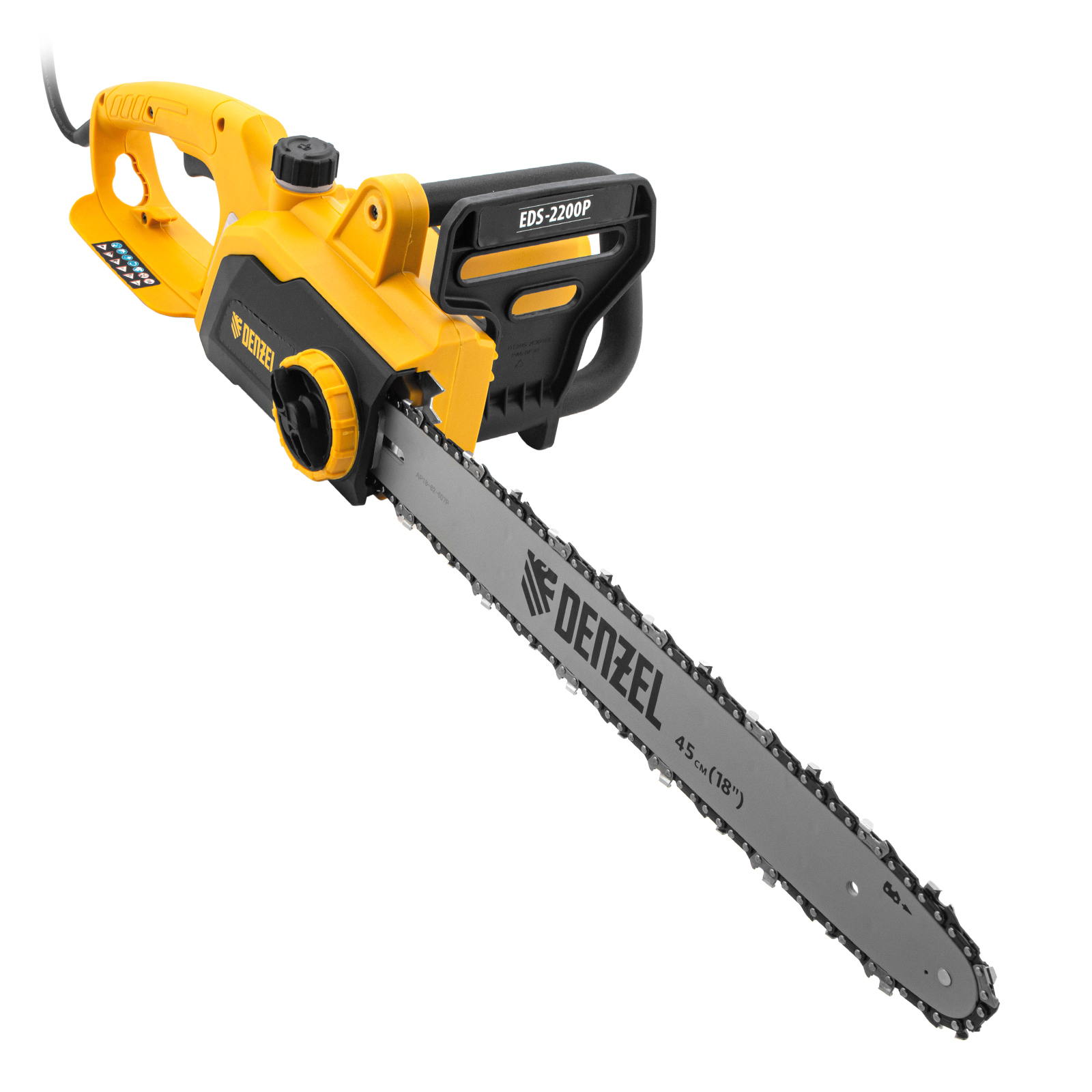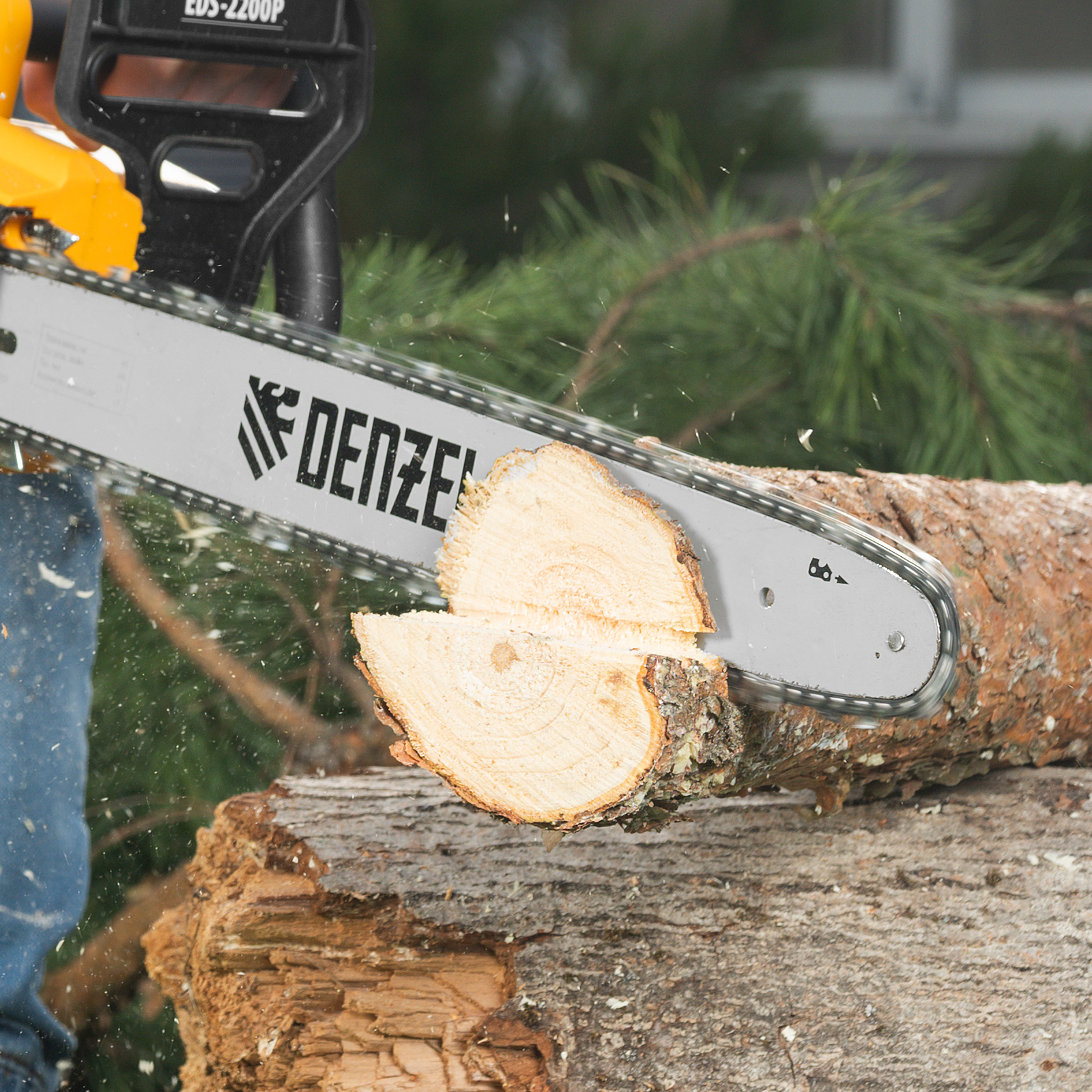Электрическая цепная пила Denzel EDS-2200P 95617 с поперечным расположением двигателя мощностью 2,2 кВт, совместима с шиной длиной 45 см (шаг 3/8'', паз 1,3 мм) и цепью с 63 звеньями. Предназначена для распила различных пород древесины. Успешно справляется с валкой деревьев, подравниванием ветвей, заготовкой дров, спиливанием веток и т.д. Для работы пилы не требуется приготовление топливной смеси. Благодаря отсутствию вредных выхлопов и неприятного запаха инструмент можно использовать в помещении.