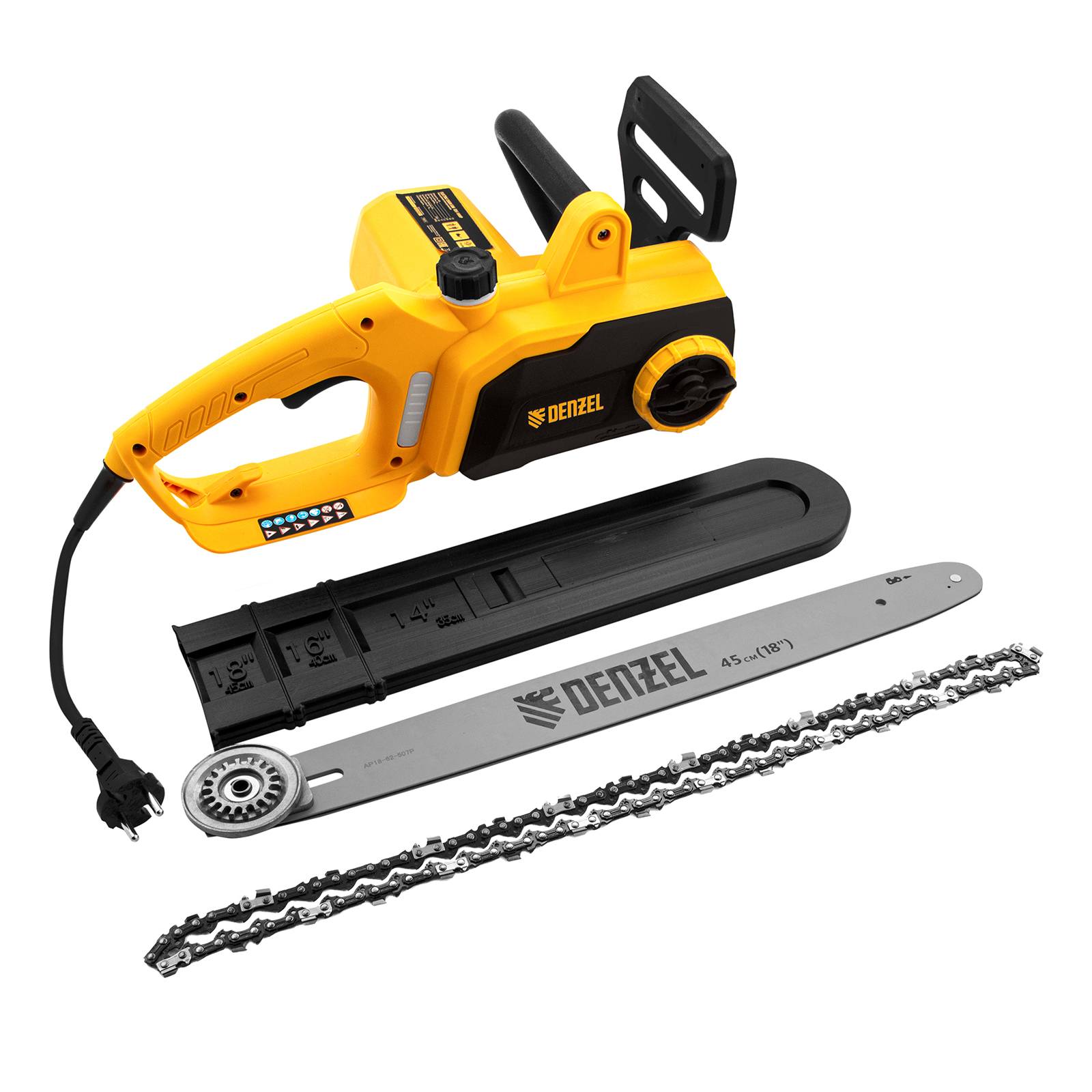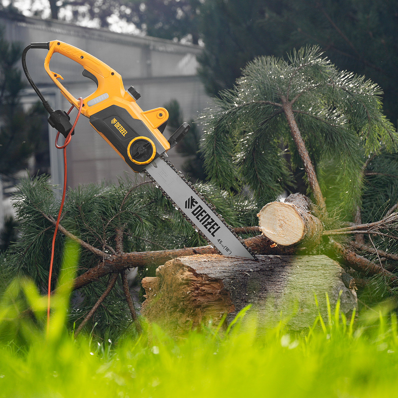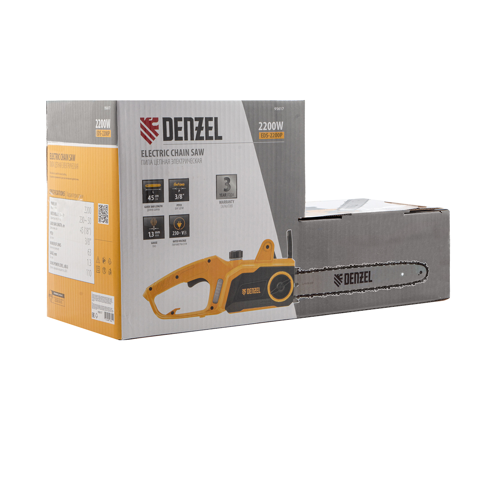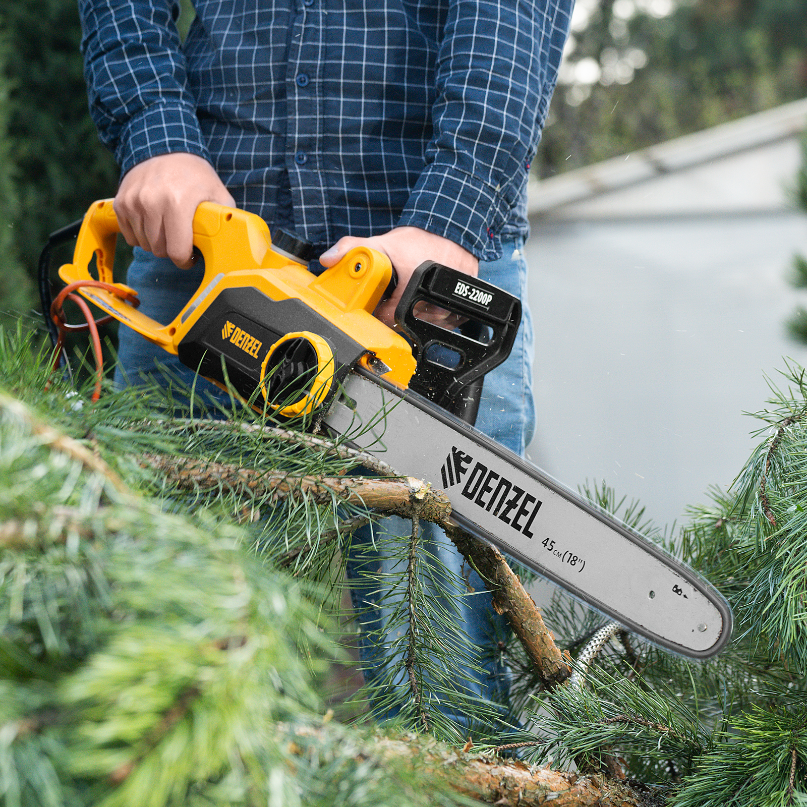 Электрическая цепная пила Denzel EDS-2200P 95617 с поперечным расположением двигателя мощностью 2,2 кВт, совместима с шиной длиной 45 см (шаг 3/8'', паз 1,3 мм) и цепью с 63 звеньями. Предназначена для распила различных пород древесины. Успешно справляется с валкой деревьев, подравниванием ветвей, заготовкой дров, спиливанием веток и т.д. Для работы пилы не требуется приготовление топливной смеси. Благодаря отсутствию вредных выхлопов и неприятного запаха инструмент можно использовать в помещении.