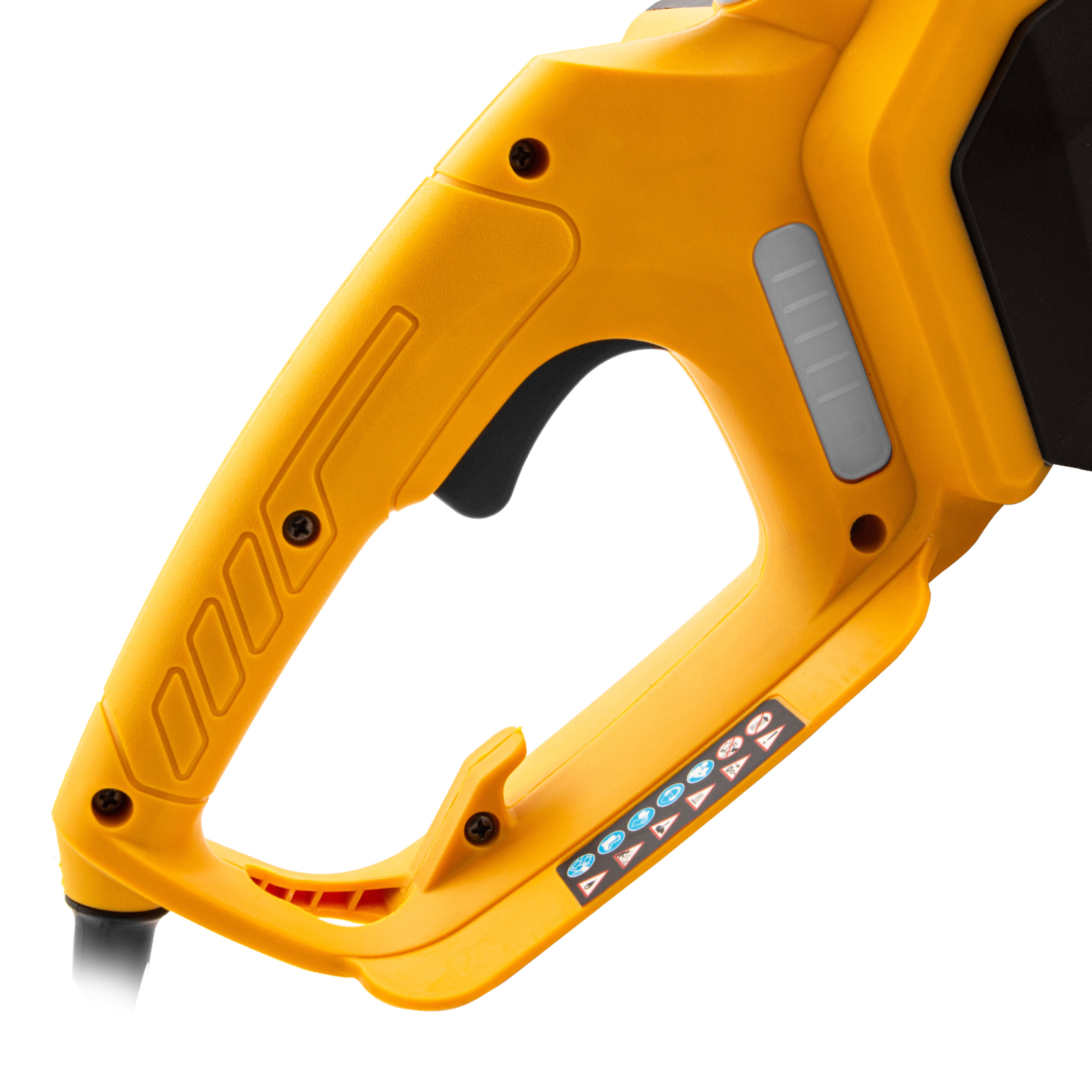 - Продуманная конструкция — на задней рукоятке имеется держатель для кабеля удлинителя.