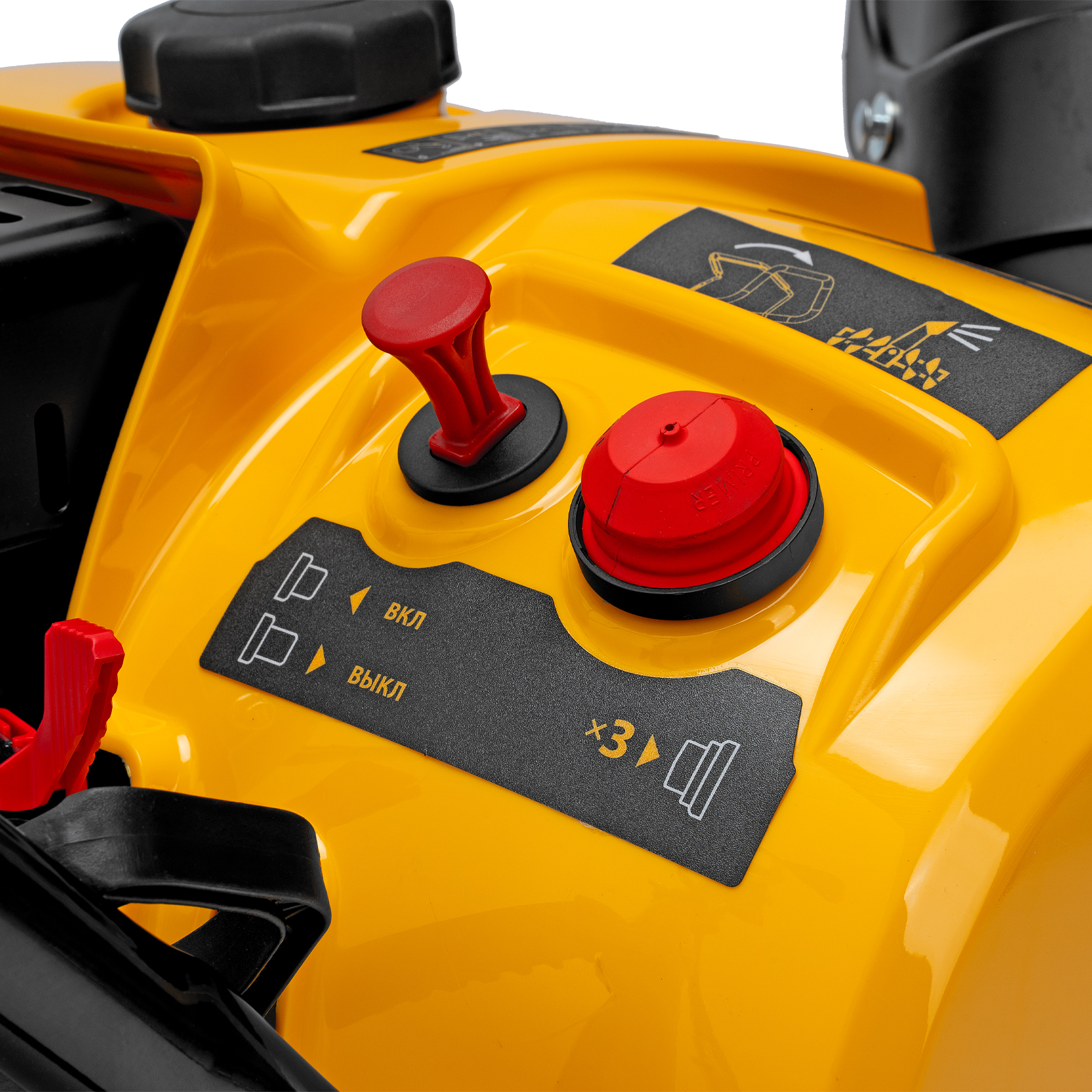 - Удобное управление — широкая рукоятка ручного старта облегчает запуск двигателя, для регулировки угла поворота желоба не нужно наклоняться.
