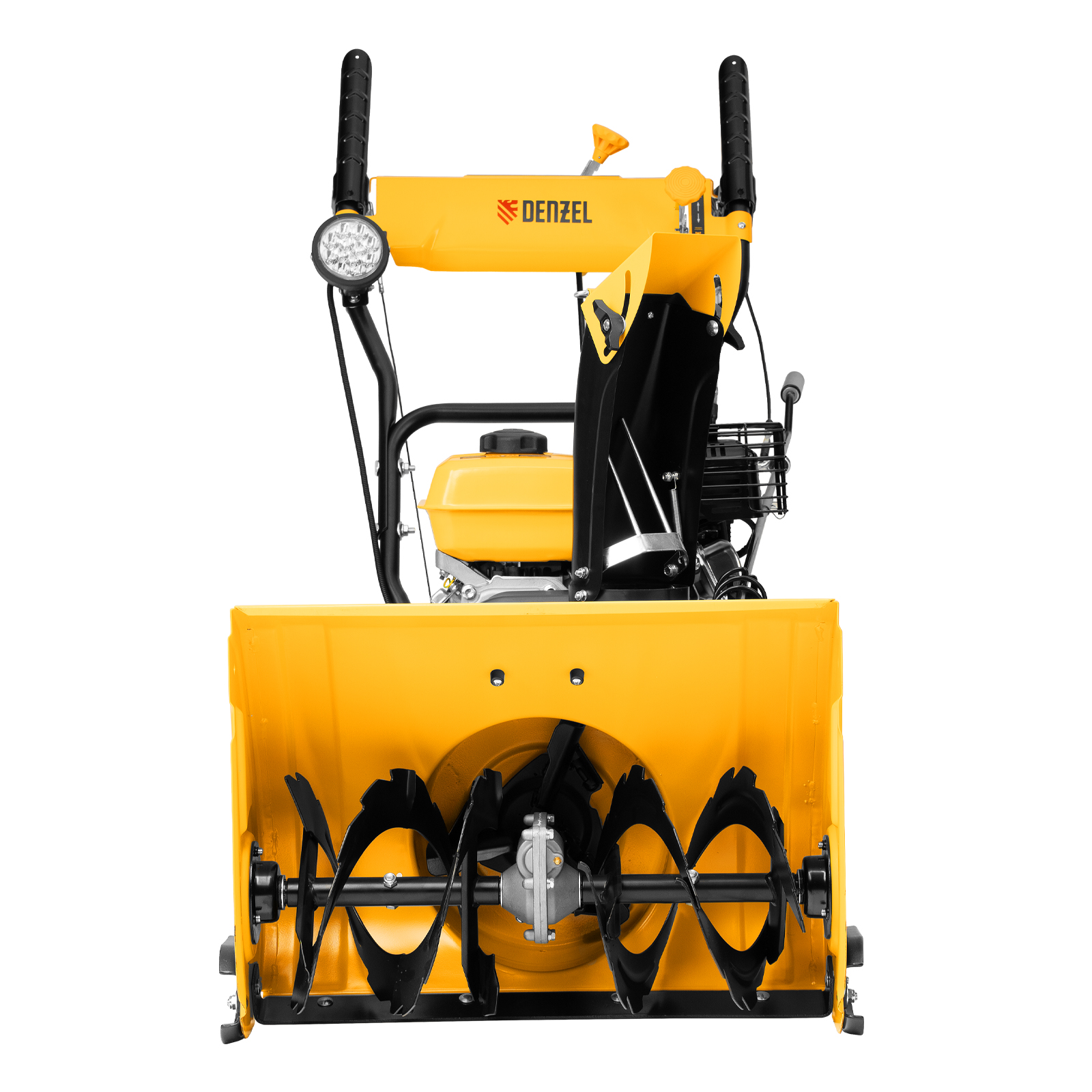 Гибридная снегоуборочная машина Denzel SWB-800 97662 с двигателем объемом 212 см3, ручным стартером и 2 насадками, предназначена для очистки территории от снега, а также может использоваться для уборки листвы, грязи, пыли и мусора. Благодаря приводу на колеса машину не нужно толкать. Ширина обработки щеткой составляет 800 мм, ширина снегоуборочной насадки — 560 мм при высоте захвата 430 мм. Машина позволяет быстро расчистить дорожки, тротуары, территорию парковки и т.д.