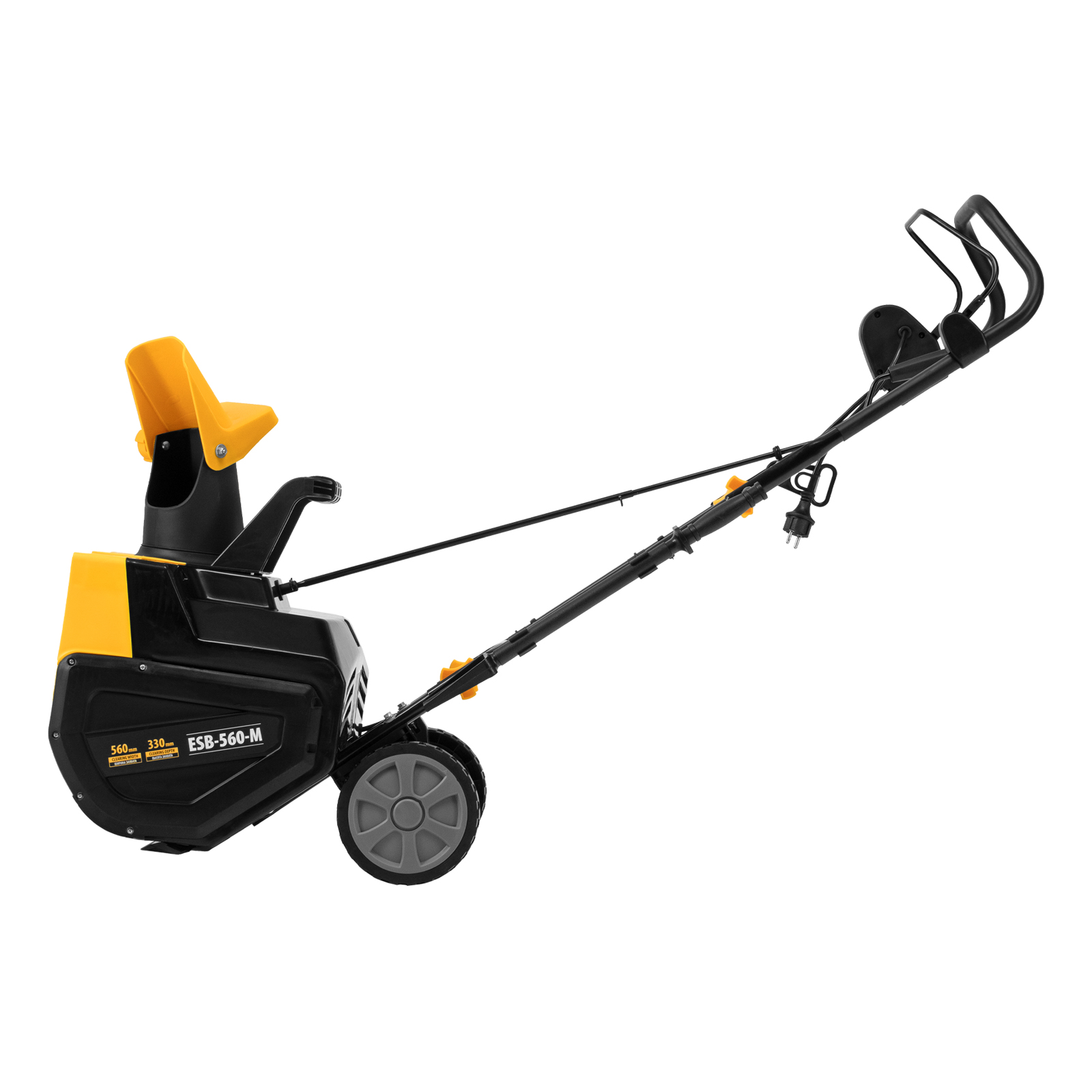 - Простая регулировка направления выброса снега — удобная рукоятка поворота желоба избавляет пользователя от необходимости наклоняться.