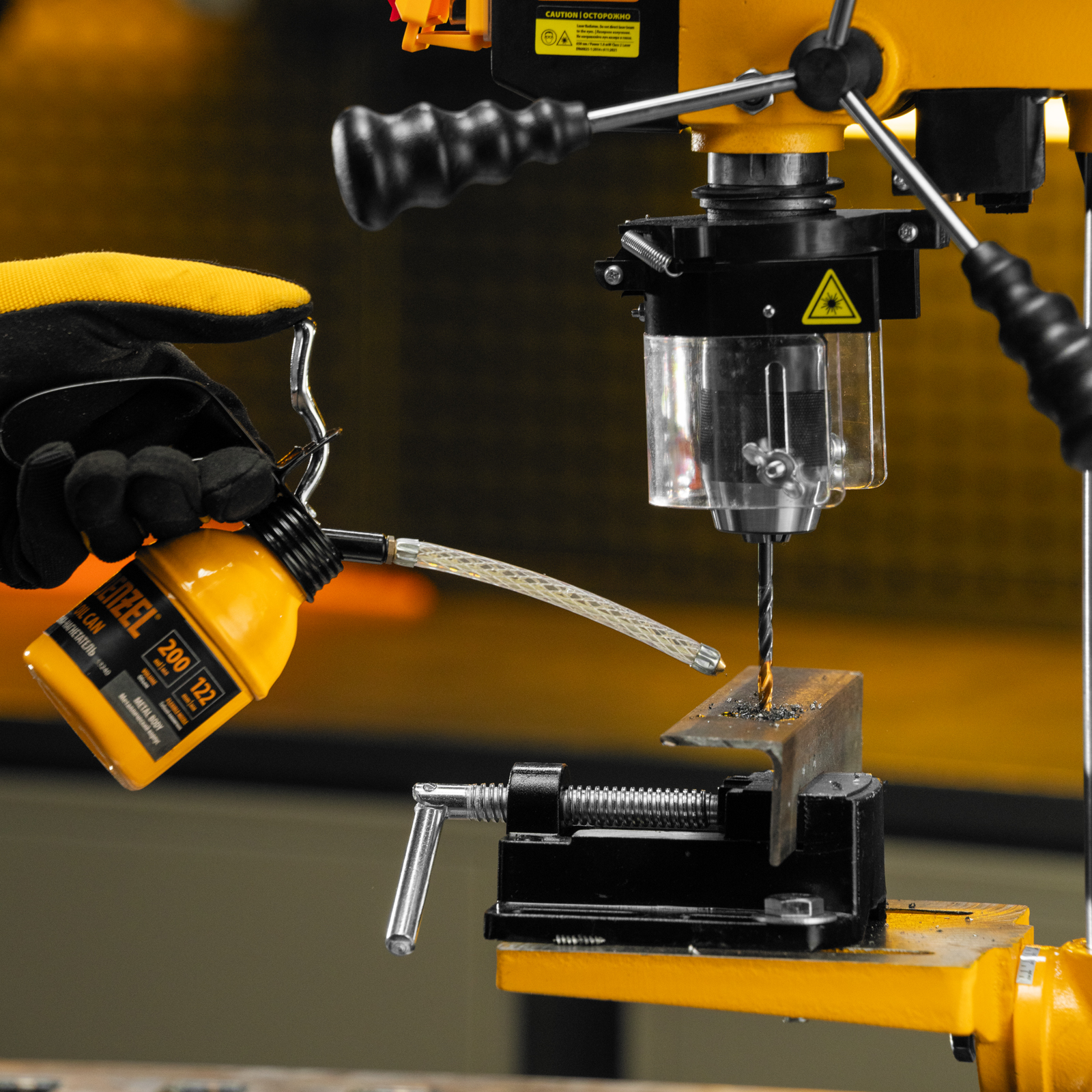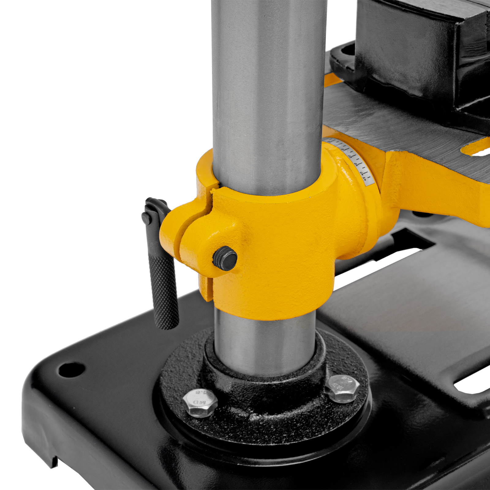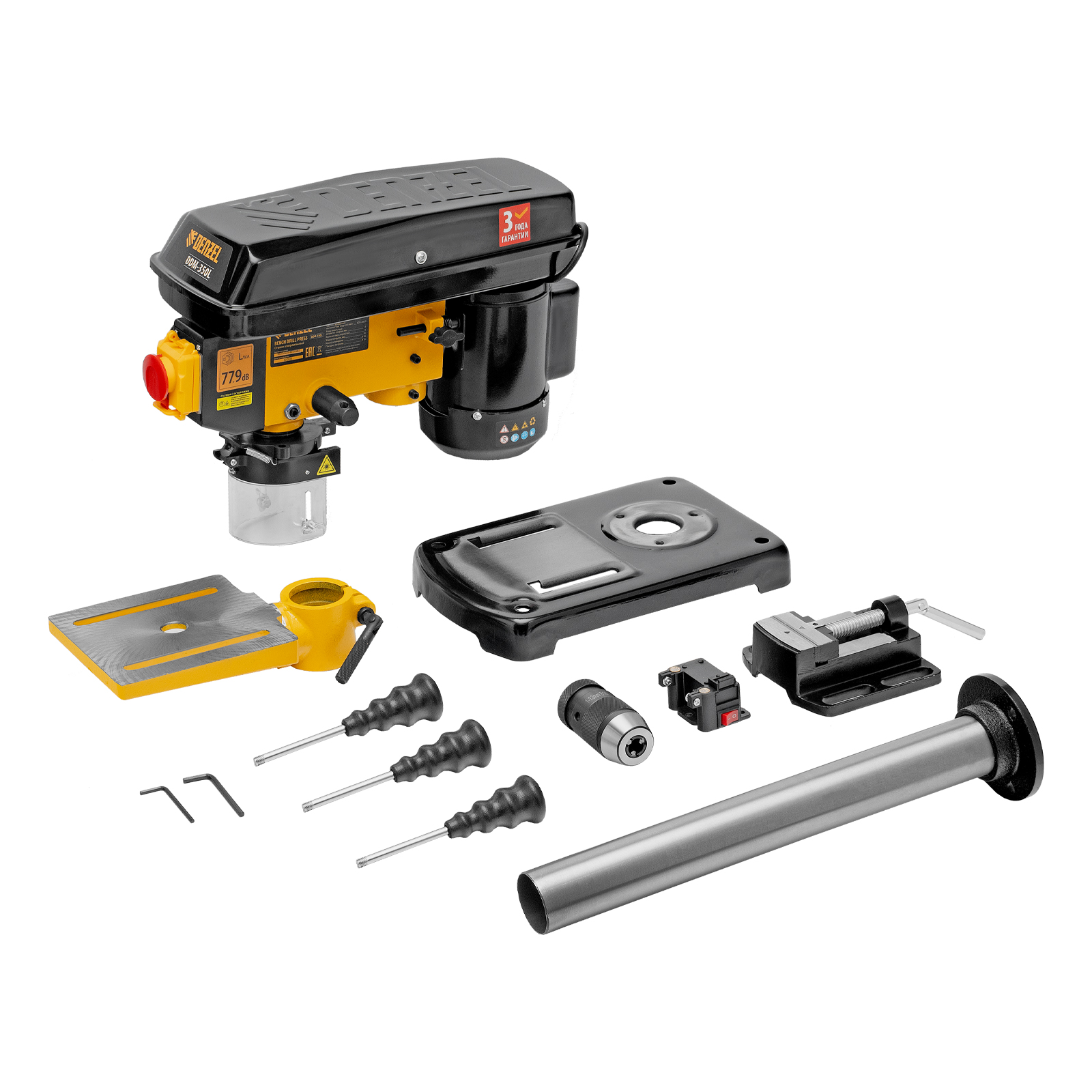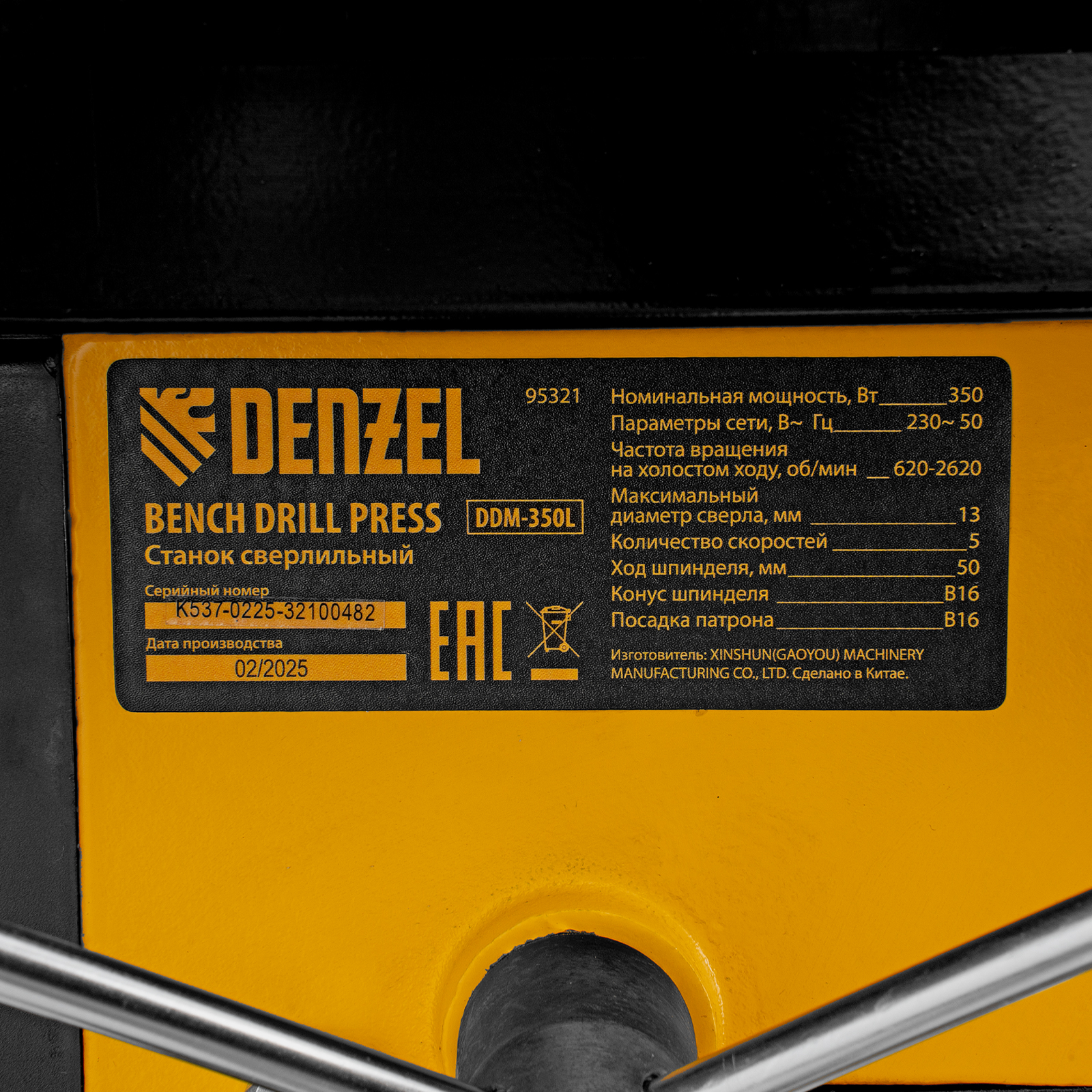 Настольный сверлильный станок Denzel DDM-350L 95321 мощностью 350 Вт поддерживает 5 уровней частоты вращения шпинделя, оснащен лазером и совместим с оснасткой диаметром 1-13 мм. Предназначен для сверления отверстий и шлифования деталей. Ременная передача позволяет успешно решать различные задачи. Повышенная частота вращения шпинделя позволяет эффективно обрабатывать плотные материалы и составляет 620-2620 об/мин, можно установить оптимальную в соответствии с поставленной задачей (предусмотрено 5 уровней). Надежный асинхронный двигатель обеспечивает длительную стабильную работу даже при интенсивном использовании. Станок пригодится в мастерской и гараже.
