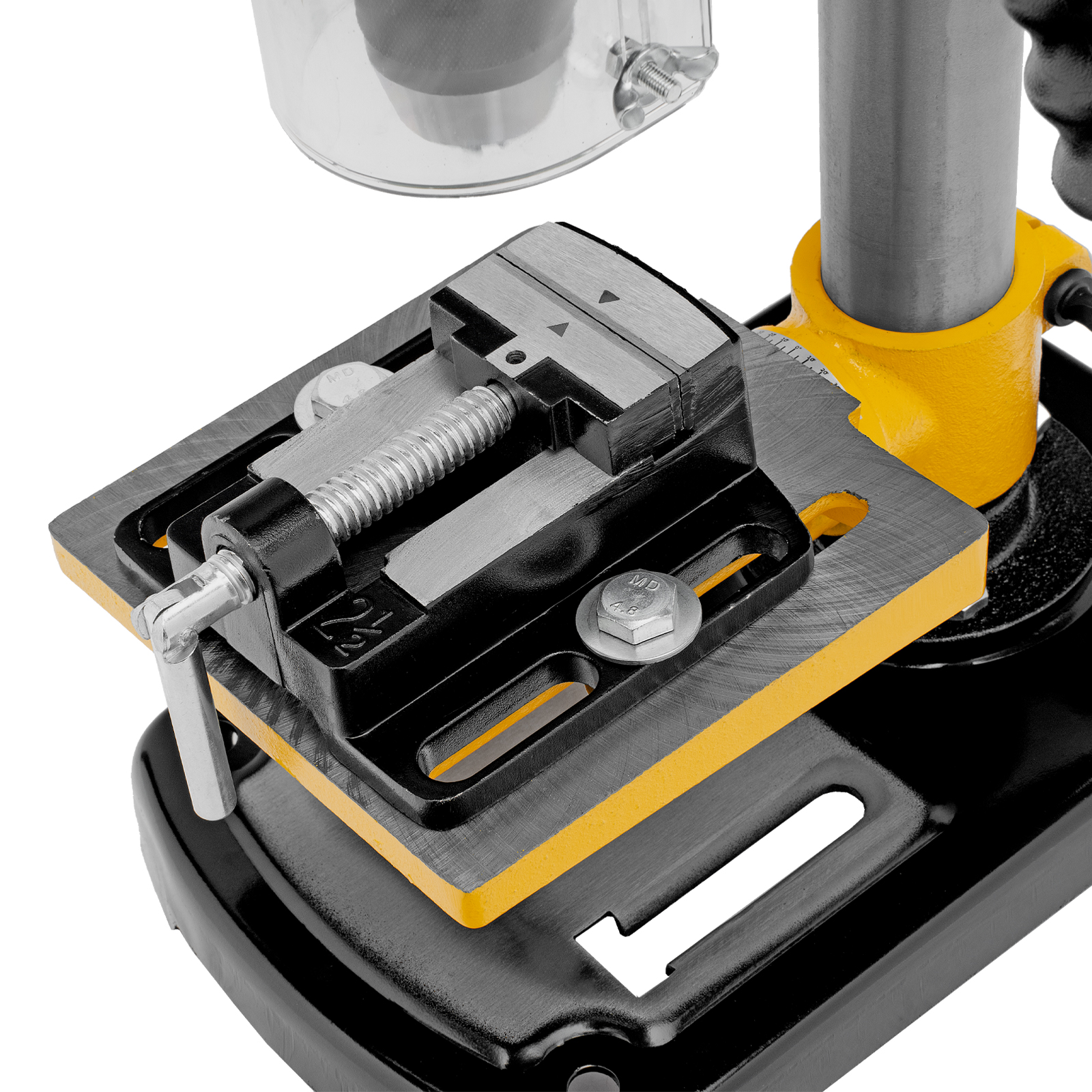 - Надежная фиксация обрабатываемой детали — производитель предусмотрел специальные тиски.