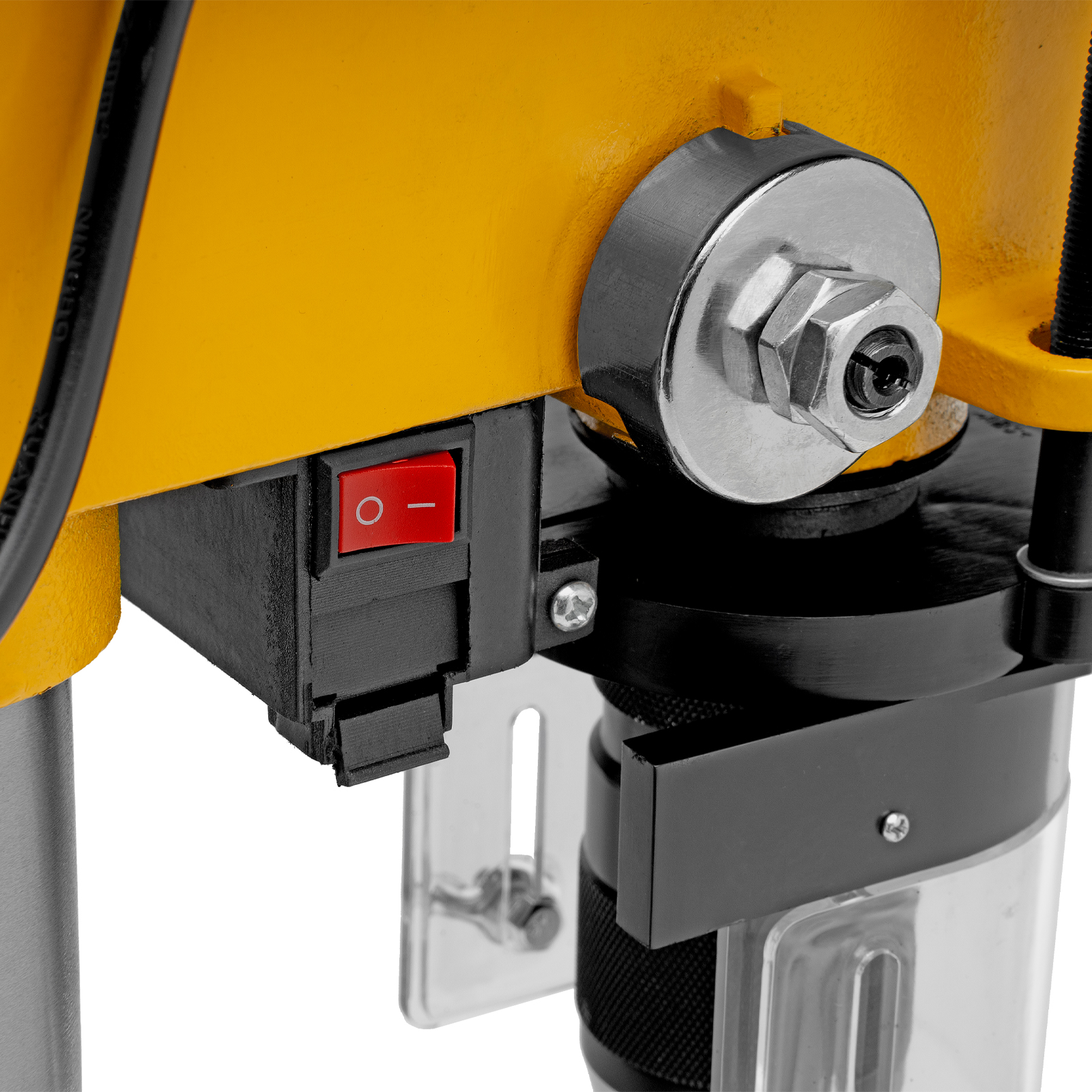 - Комфортная работа — перекрестный лазерный указатель значительно облегчает получение отверстий в заданной точке: после настройки системы станок будет сверлить в месте пересечения лучей.