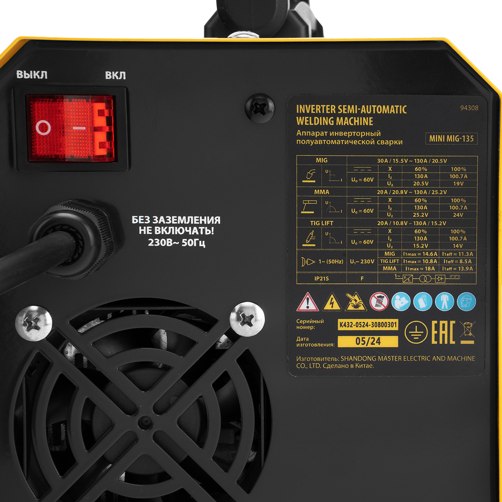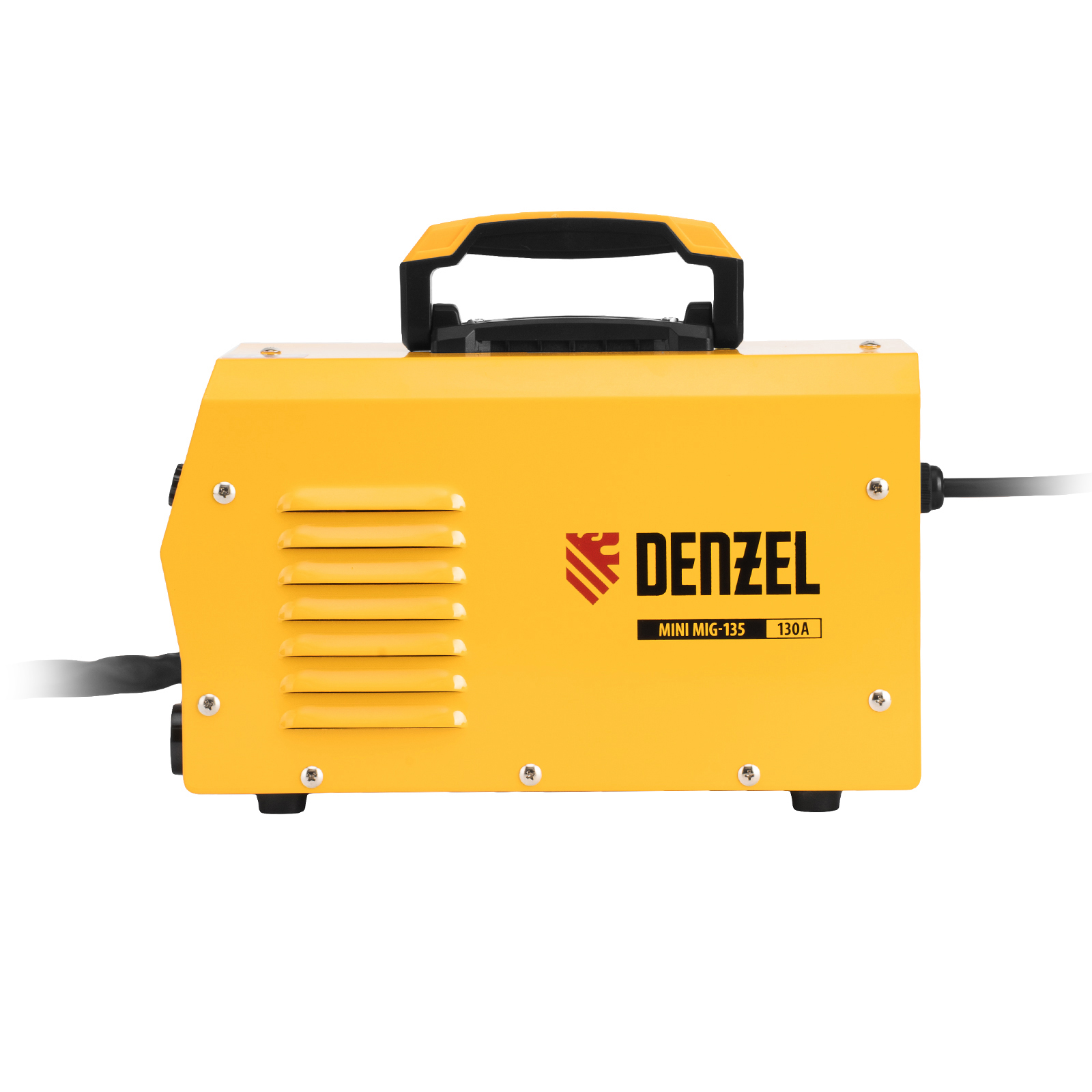 Инверторный аппарат полуавтоматической сварки Denzel Mini MIG-135 94308 предназначен для выполнения сварочных работ при постоянном токе до 130 A и продолжительности включения 60%. Доступные режимы: ручная дуговая сварка покрытым электродом (MMA), сварка порошковой (или флюсовой) проволокой диаметром 0,6/0,8 мм (FCAW), а также аргонодуговая сварка неплавящимся электродом (Lift TIG). Горелка TIG не входит в комплект поставки и приобретается отдельно.