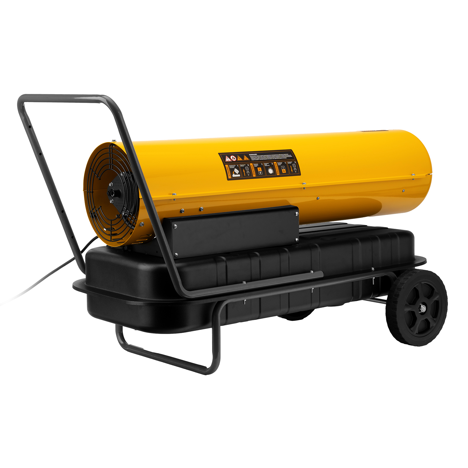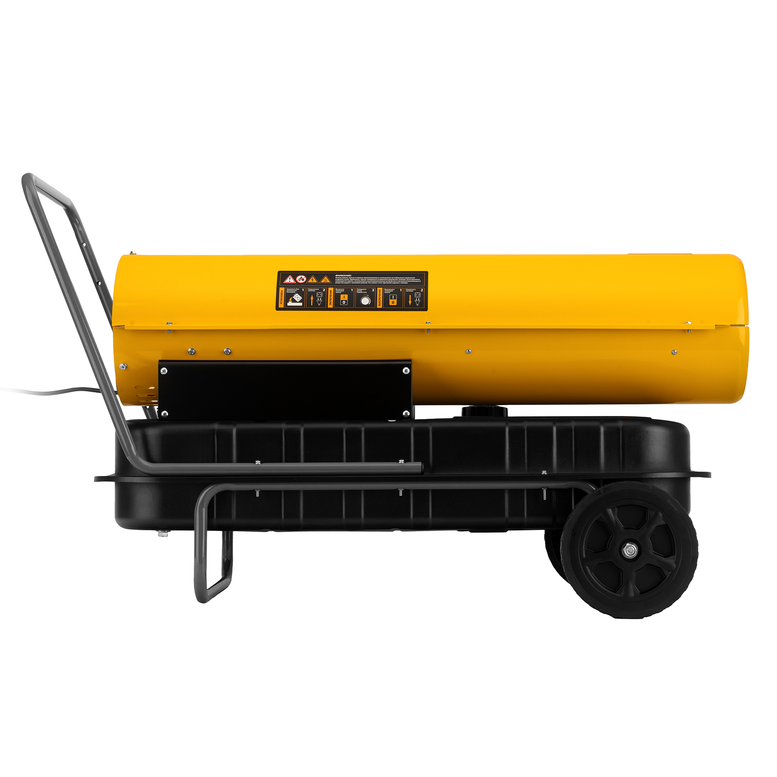 - Удобство транспортировки — тепловая пушка оснащена ручкой и 2 колесами.