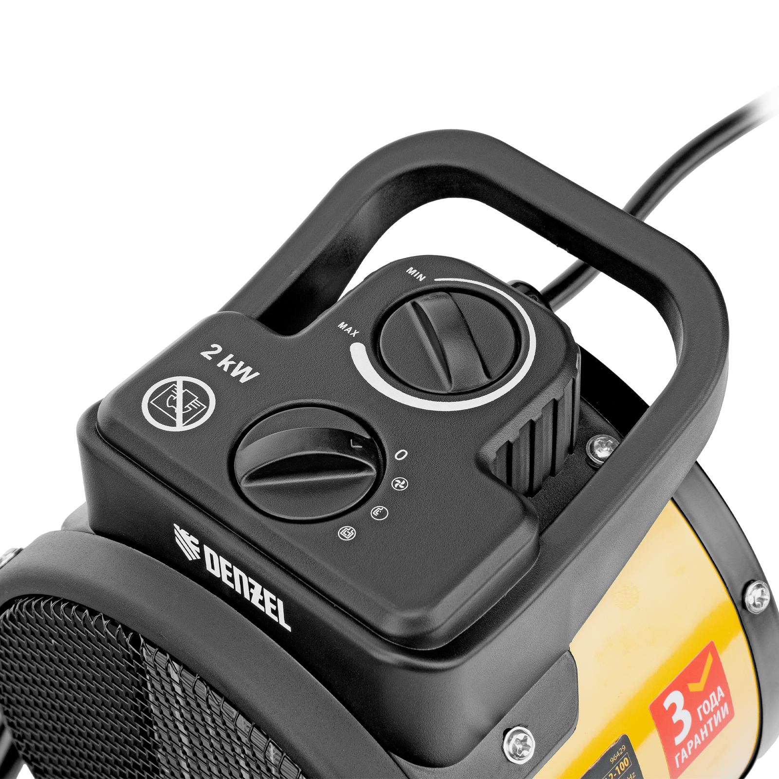 Тепловая пушка Denzel DHC 2-100 96429 работает на мощности 0,025, 1 или 2 кВт. Пригодится в любую погоду: в холод обогреет помещение, а в жару может использоваться в качестве вентилятора. Также тепловентилятор применяется для просушки поверхностей — окрашенных и оштукатуренных стен, стяжек. Максимальной мощности 2 кВт хватит для обогрева помещения площадью до 20 м². Работа пушки не доставляет дискомфорт, безопасна для здоровья людей и животных, поскольку керамический нагревательный элемент не сушит воздух и не выделяет вредных веществ.