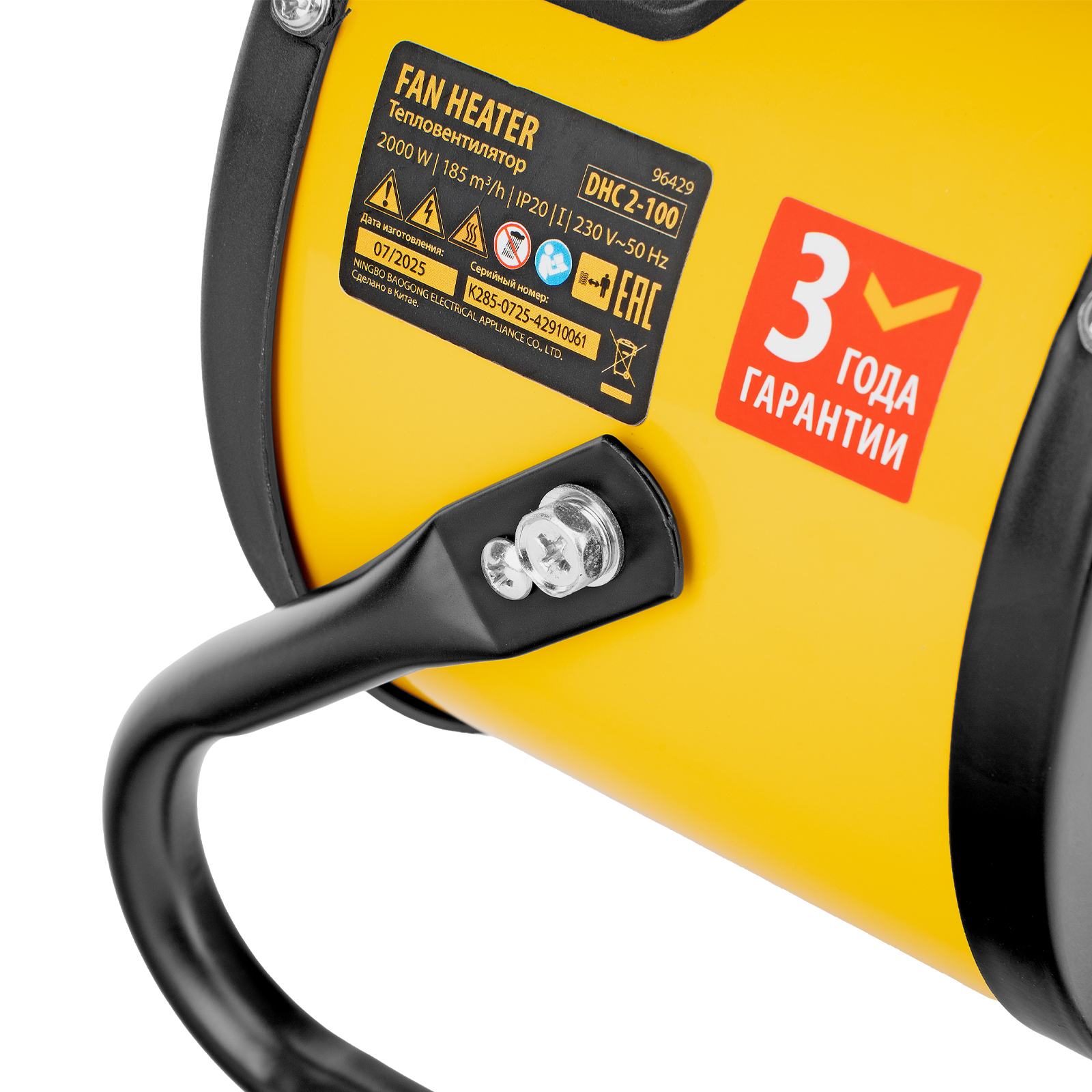 - Гарантия 3 года — высокое качество тепловой пушки подтверждено производителем.