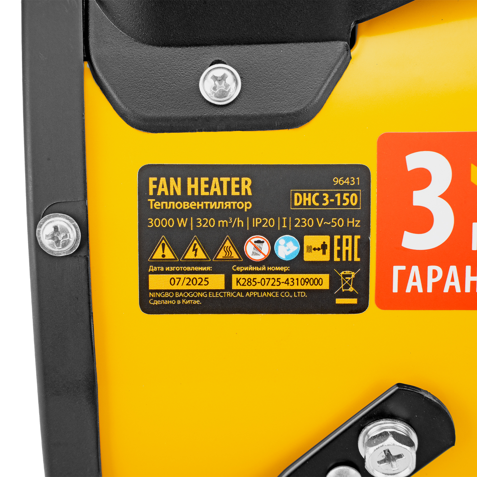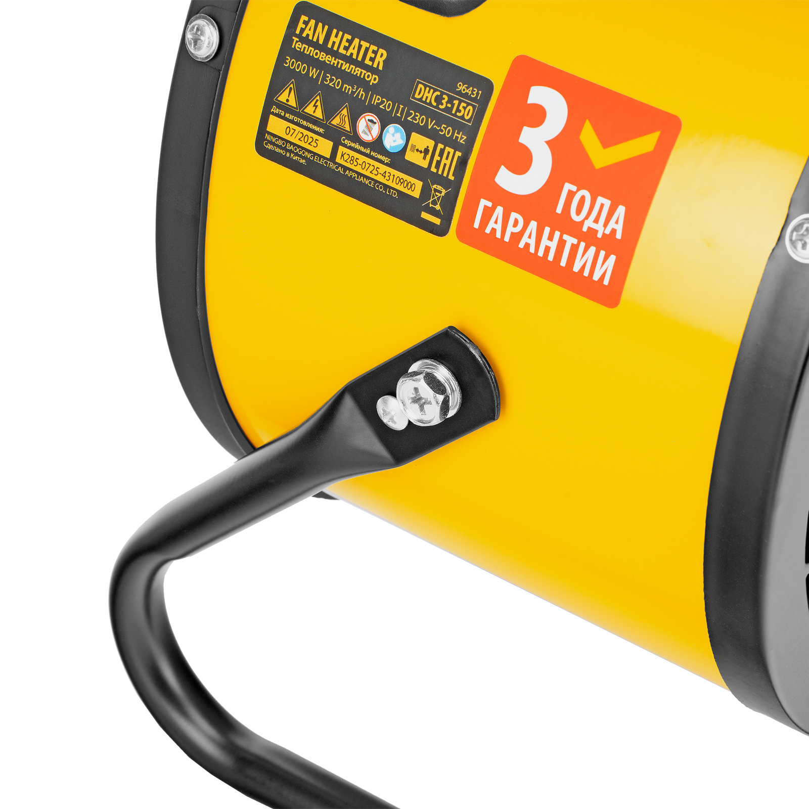 - Гарантия 3 года — высокое качество тепловой пушки подтверждено производителем.