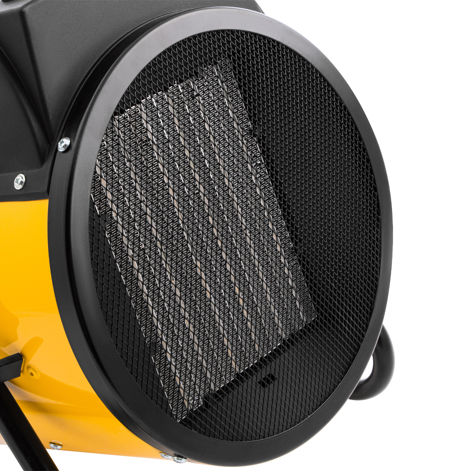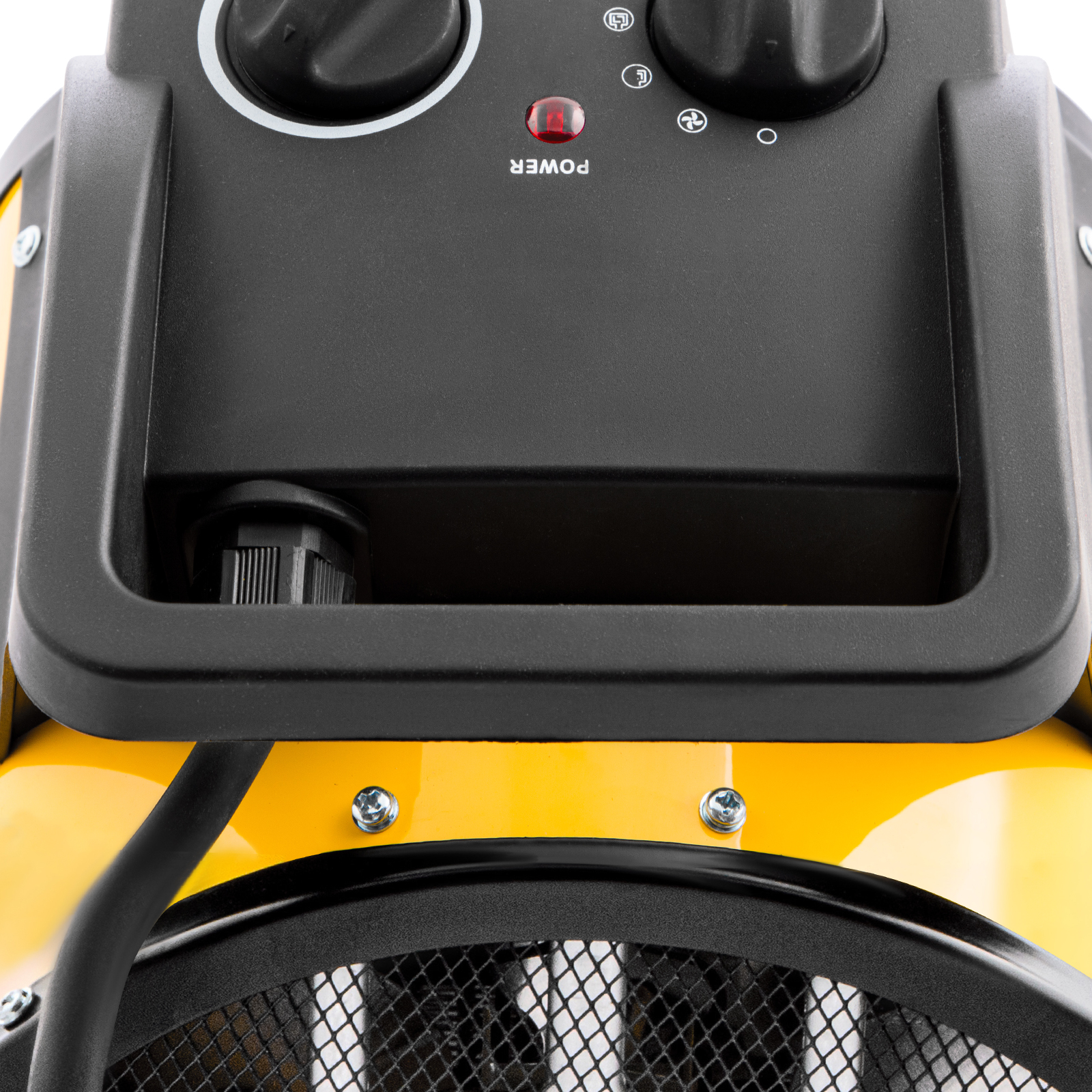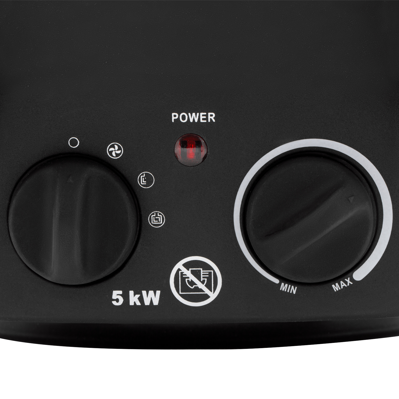 Тепловая пушка (тепловентилятор) Denzel DHC 5-400 96428 с керамическим нагревательным элементом работает на мощности 0,04/3/5 кВт. Пригодится в любую погоду: в холод обогреет помещение, в теплое время года может использоваться как вентилятор. Также пушка применяется во время отделочных работ для просушки поверхностей — окрашенных и оштукатуренных стен, стяжек и т.д. Максимальной мощности 5 кВт хватит для обогрева помещения площадью до 50 кв.м. Работа тепловентилятора не доставляет дискомфорт, безопасна для здоровья людей и животных, поскольку керамический нагревательный элемент не сушит воздух и не выделяет вредных веществ.,Внимание! Тепловая пушка поставляется с установленным кабелем питания и силовой вилкой 230 В / 32 А, для подключения используется силовая розетка 230 В / 32 А (обычные бытовые розетки не рассчитаны на мощность 5 кВт).