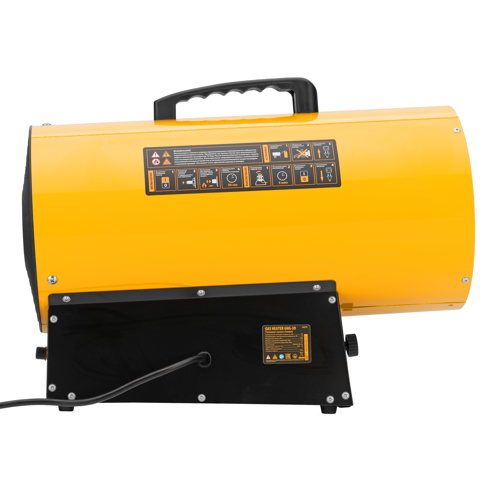 Газовая тепловая пушка Denzel GHG-30 96479 мощностью 30 кВт работает на смеси пропан-бутан и выдает тепловой поток со скоростью 900 куб. м/ч. Используется для обогрева складов, цехов, гаражей, теплиц и других нежилых помещений площадью до 300 кв. м. Будет полезна на строительных площадках и в производственных помещениях.