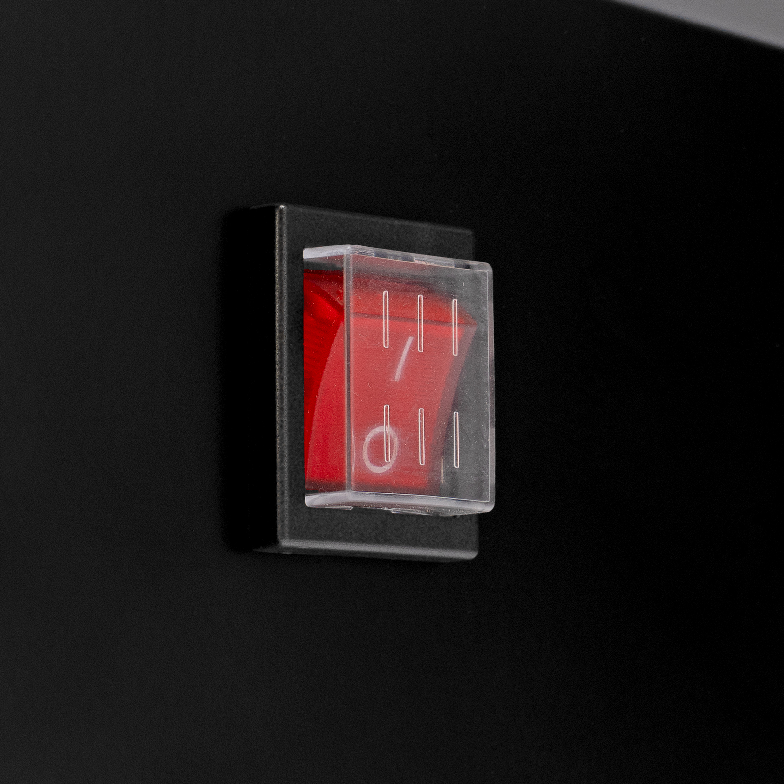 - Безопасность — выключатель питания закрыт влагозащитным кожухом, задняя решетка предотвращает попадание посторонних предметов и поломку оборудования.