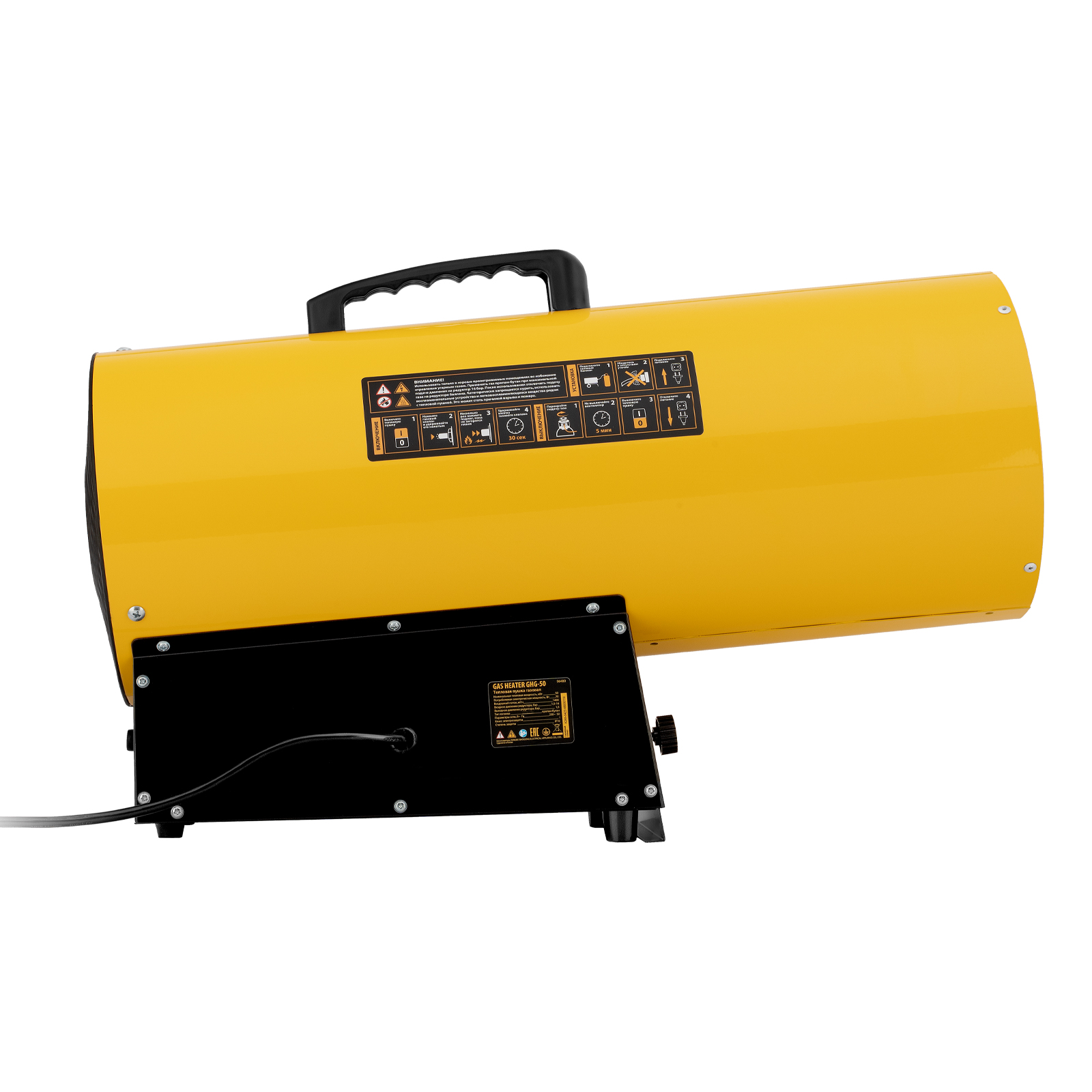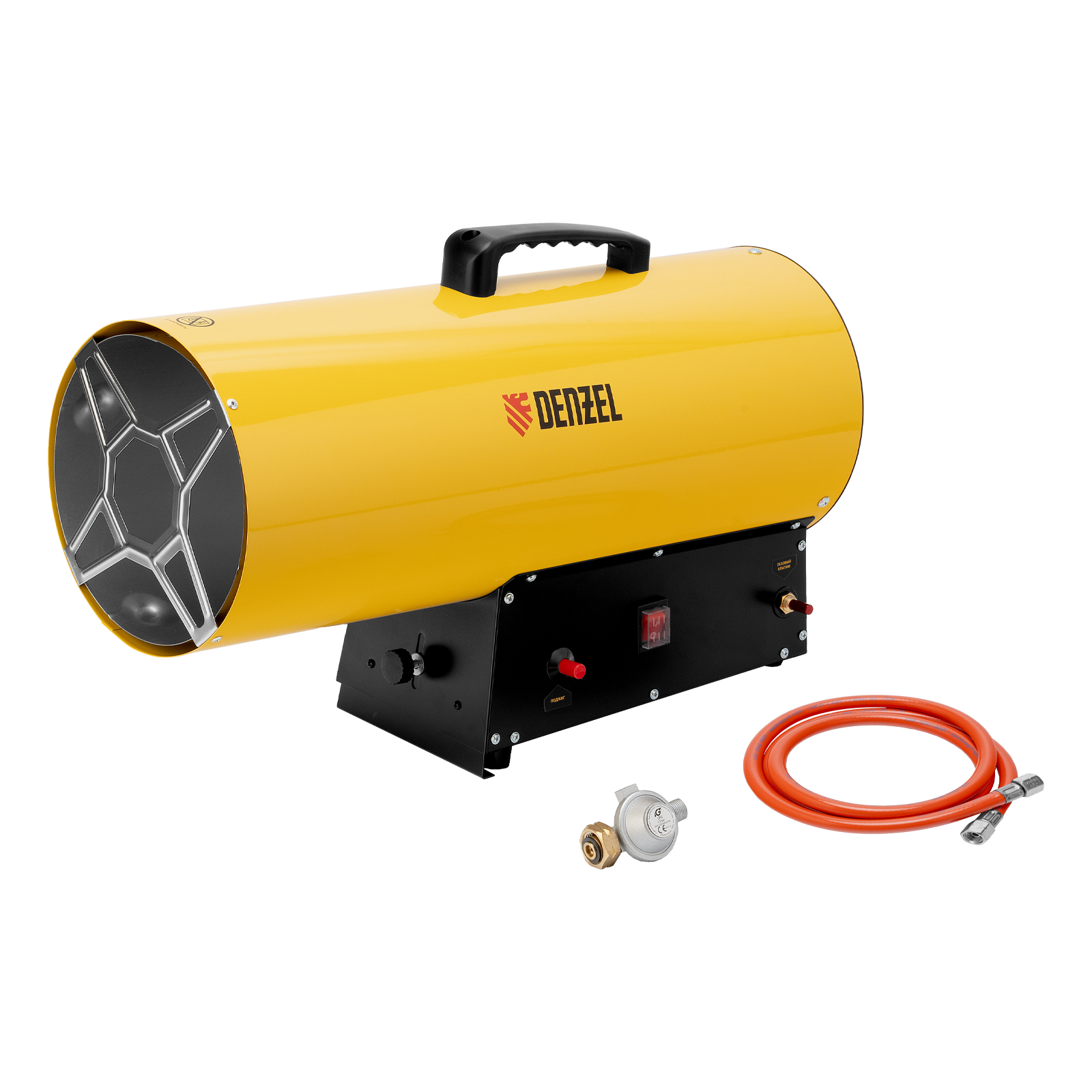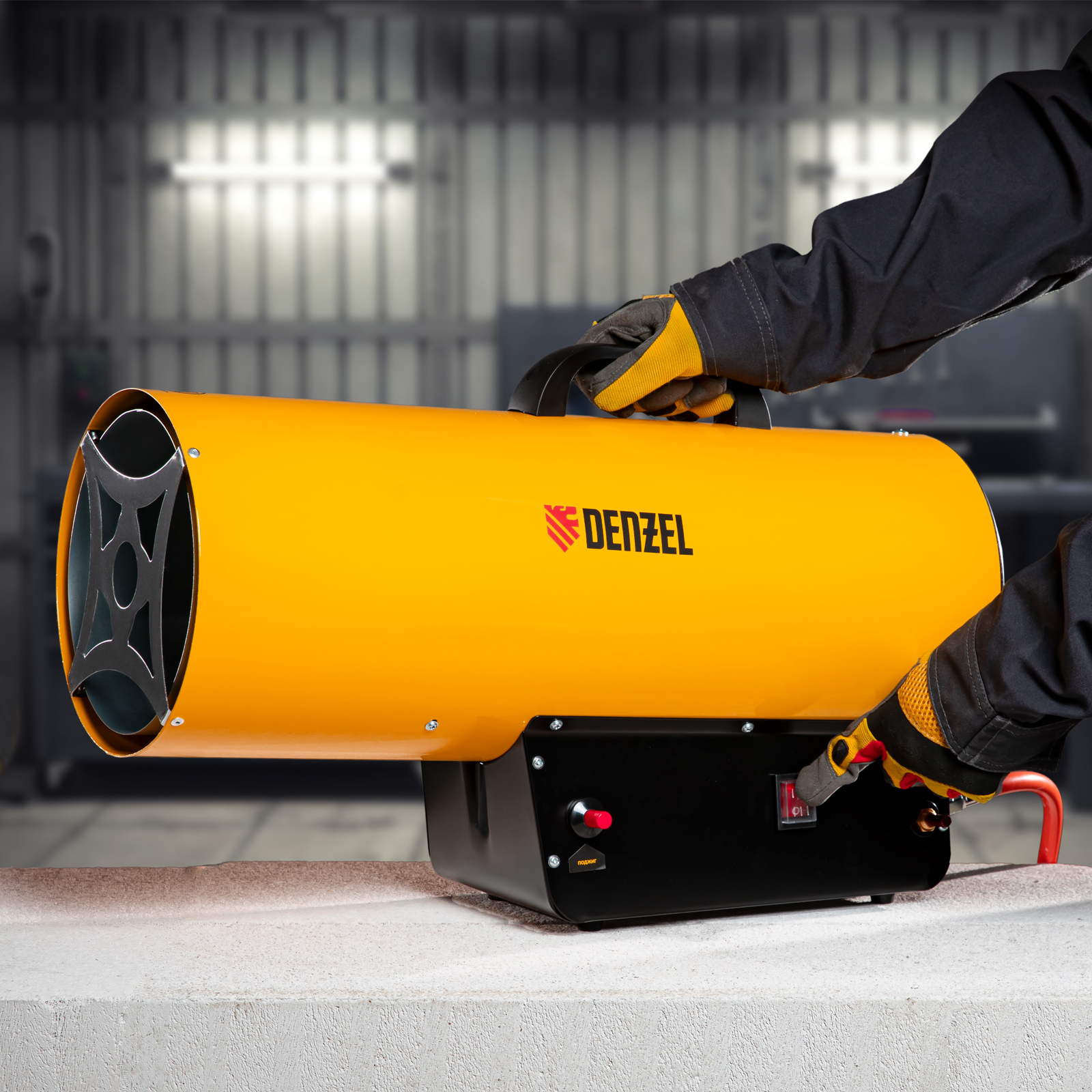 Газовая тепловая пушка Denzel GHG-50 96480 мощностью 50 кВт работает на смеси пропан-бутан и выдает тепловой поток со скоростью 1400 куб. м/ч. Используется для обогрева складов, цехов, гаражей, теплиц и других нежилых помещений площадью до 500 кв. м. Будет полезна на строительных площадках и в производственных помещениях.