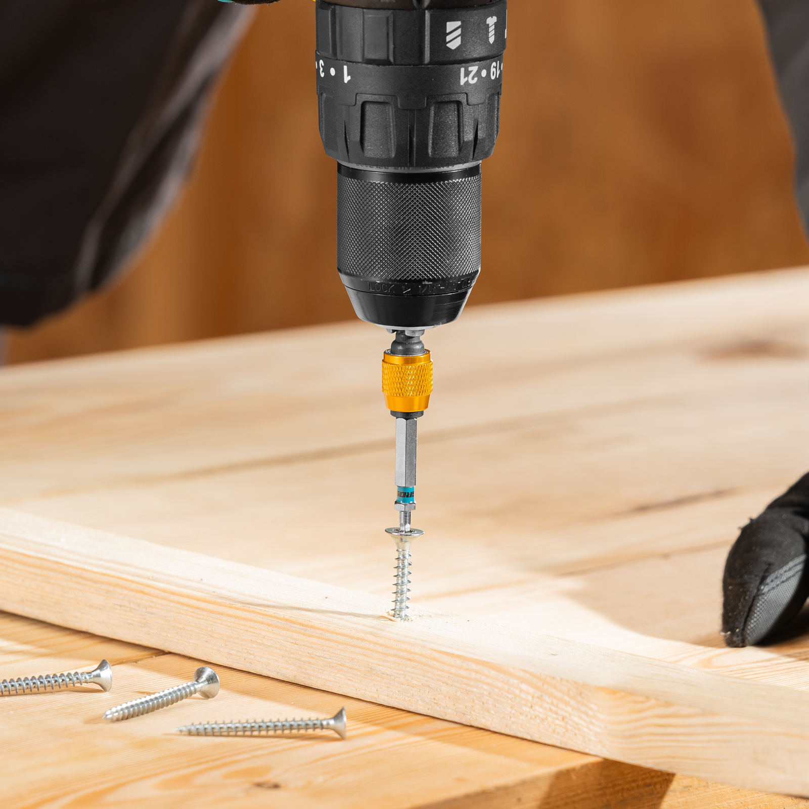 - Магнитные свойства — крепеж удерживается битой, поэтому свободной рукой можно придерживать закрепляемую поверхность.