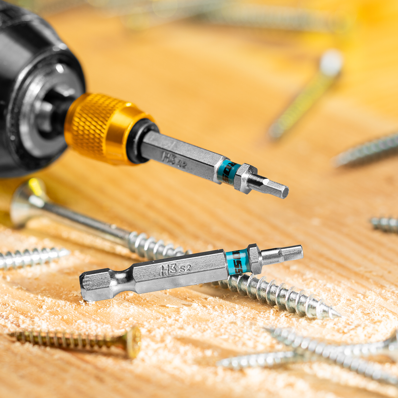 - Высокий показатель прочности — биты выполнены из японской легированной стали S2, рабочие части закалены до твердости 62 HRC.