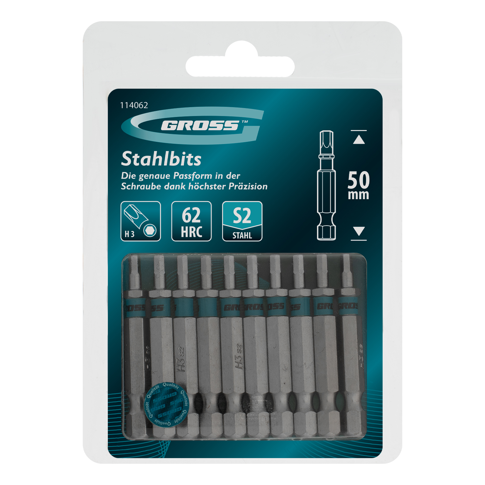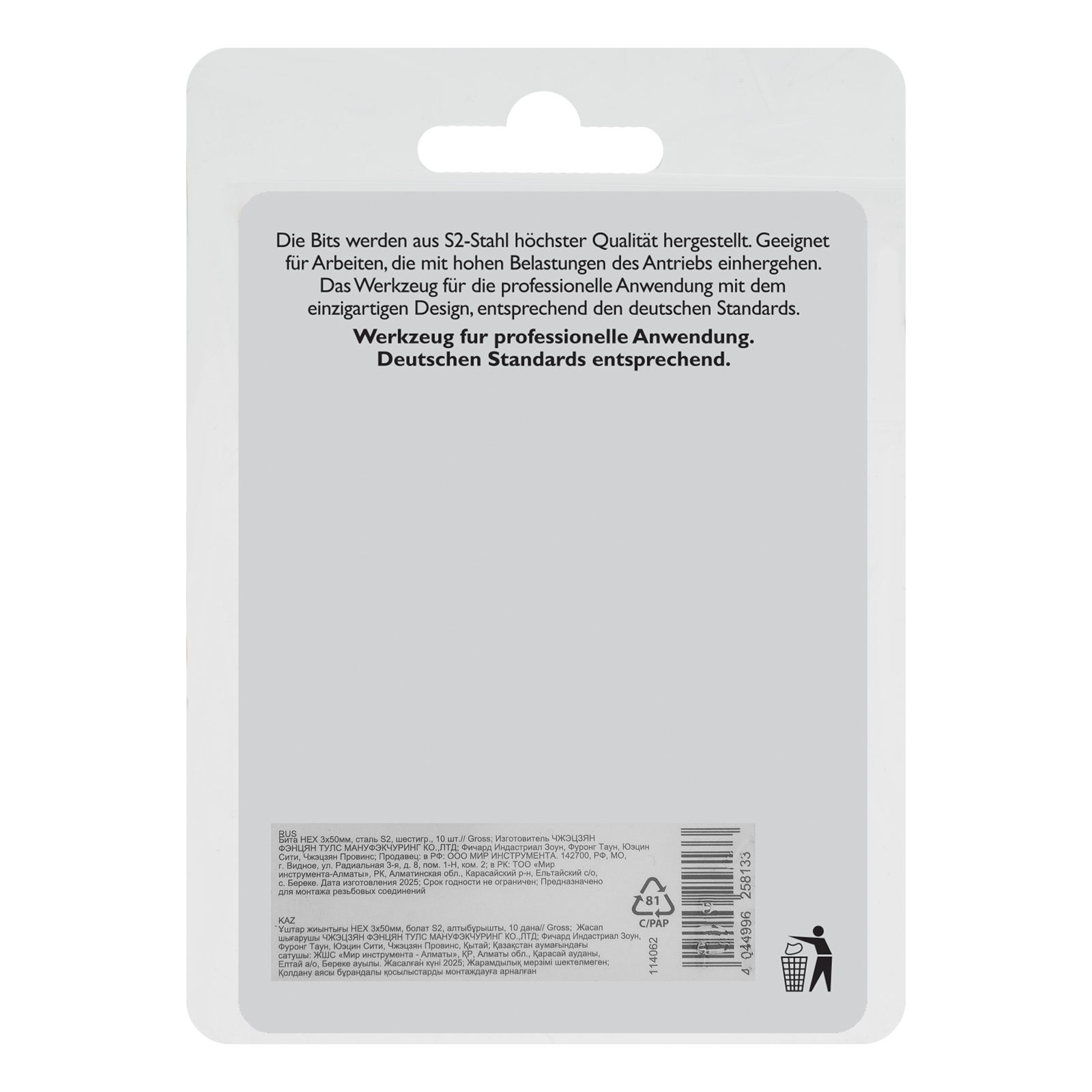 Биты HEX3 х 50 мм Gross 114062 с шестигранным хвостовиком 1/4″, из стали S2, используются в качестве оснастки на шуруповертах. Предназначены для монтажа и демонтажа мебельных и велосипедных евровинтов. Шестигранный шлиц обеспечивает большую площадь соприкосновения с крепежом, что позволяет увеличить крутящий момент без риска повреждения биты.