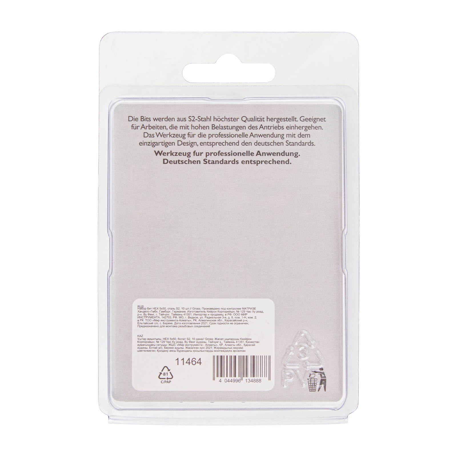 Набор бит Gross 11464 состоит из 10 сменных насадок HEX 5 х 50 мм с шестигранным хвостовиком 1/4 дюйма, изготовленных из стали S2, которые используются в качестве оснастки на шуруповертах. Биты типоразмера HEX5 предназначены для монтажа и демонтажа мебельных и велосипедных евровинтов. Шестигранный шлиц обеспечивает большую площадь соприкосновения с крепежом, что позволяет увеличить крутящий момент без риска повреждения биты.