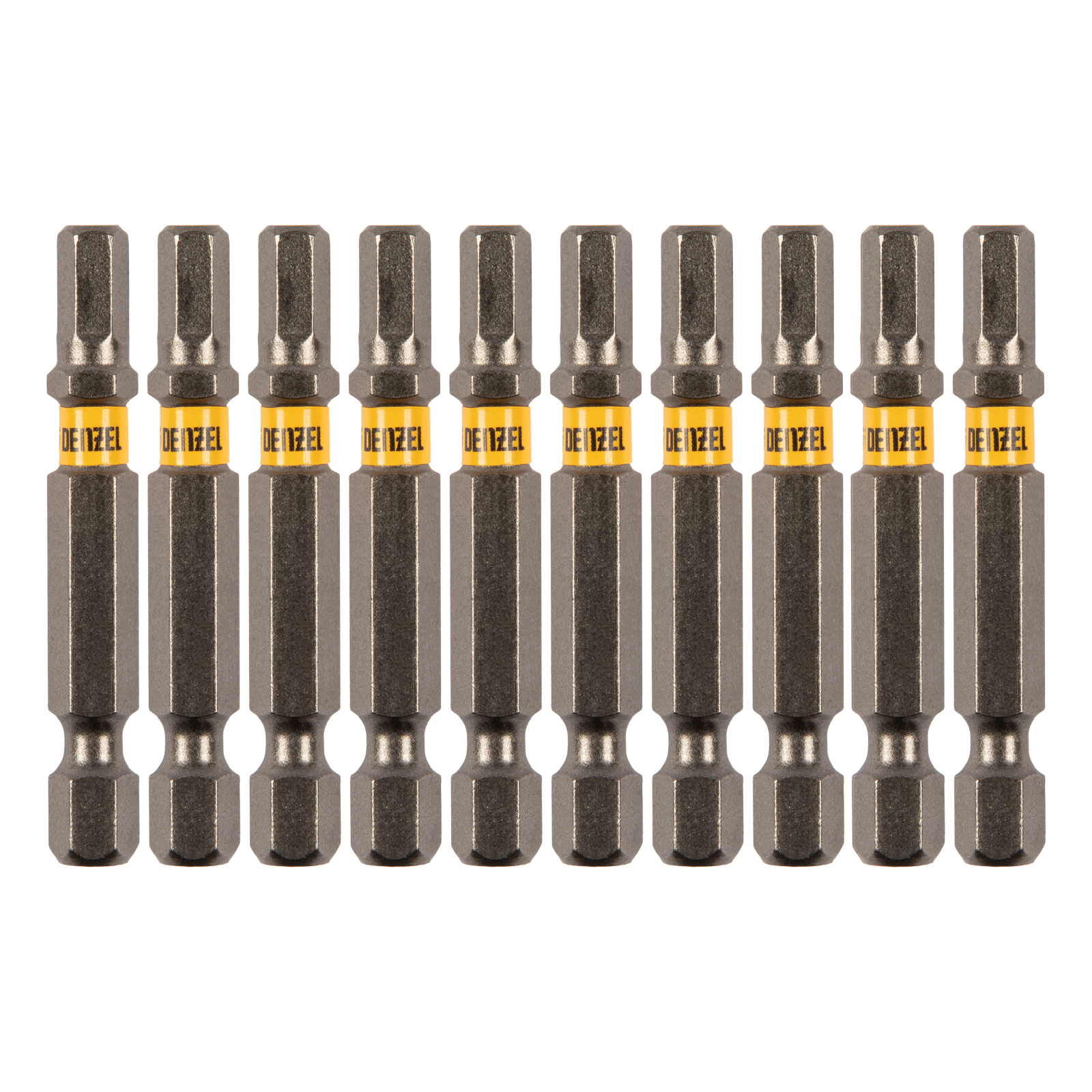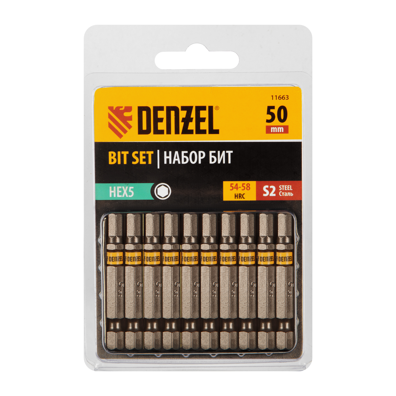 - Защита от подделок — цветное кольцо с логотипом ТМ Denzel на каждой бите подтверждает оригинальность товара.
