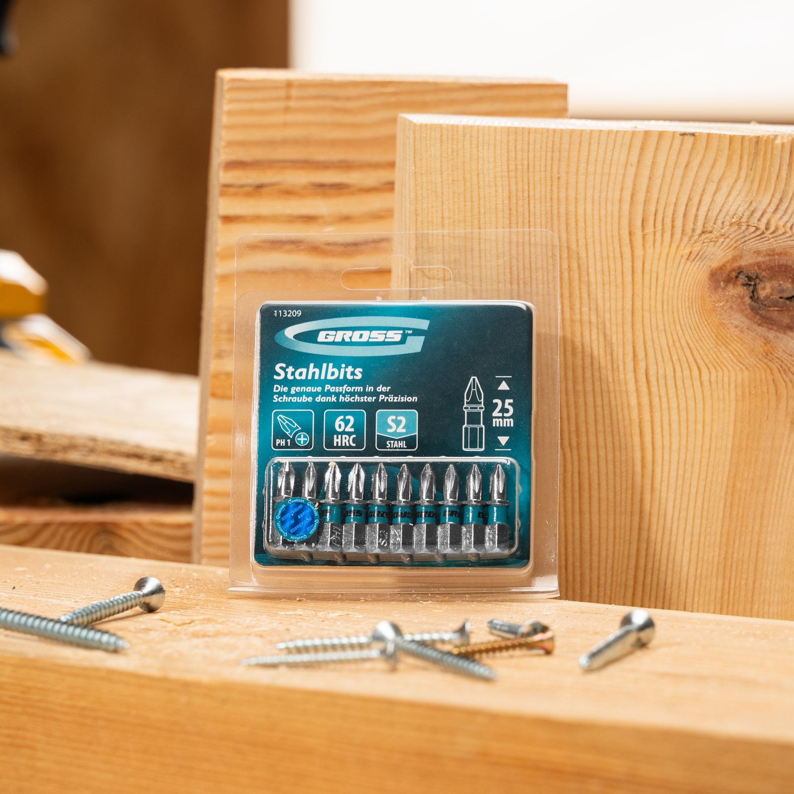 - Износостойкость — биты выполнены из японской легированной стали S2 повышенной прочности, рабочие части закалены до твердости 62 HRC.