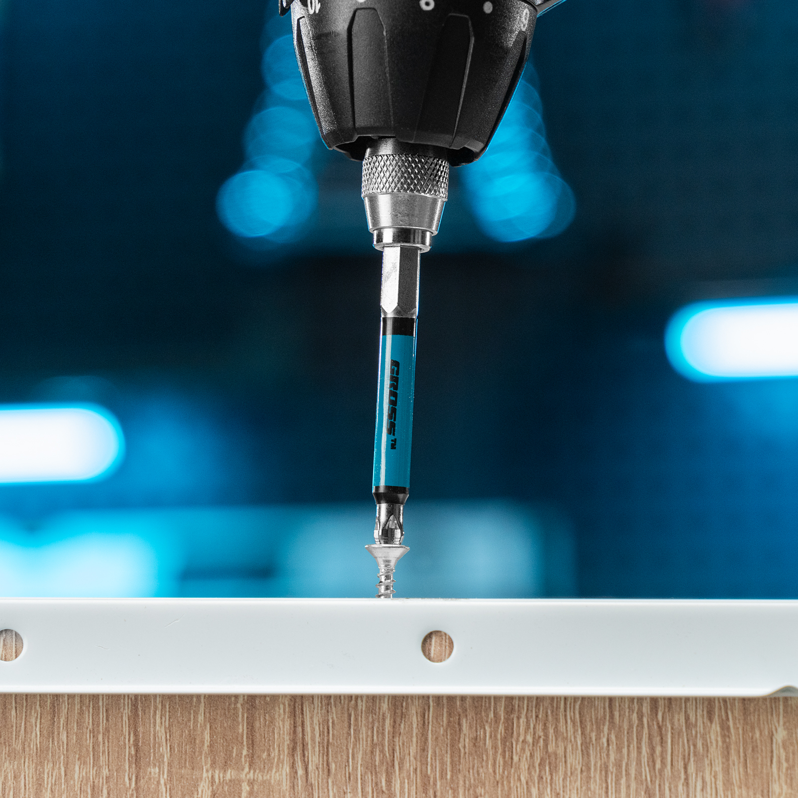 - Намагниченный шлиц облегчает работу — крепеж удерживается битой, поэтому свободной рукой можно придерживать закрепляемую поверхность.