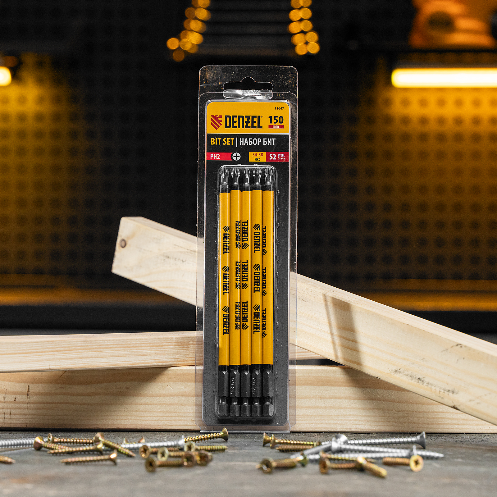 Набор односторонних бит PH2 x 150 мм Denzel 11647 — это 5 сменных насадок из стали S2 с крестообразными шлицами и шестигранными хвостовиками 1/4". Профессиональная оснастка рассчитана на работу с шуруповертом, обеспечивает быстрый монтаж и демонтаж резьбовых соединений с углублением PH2.