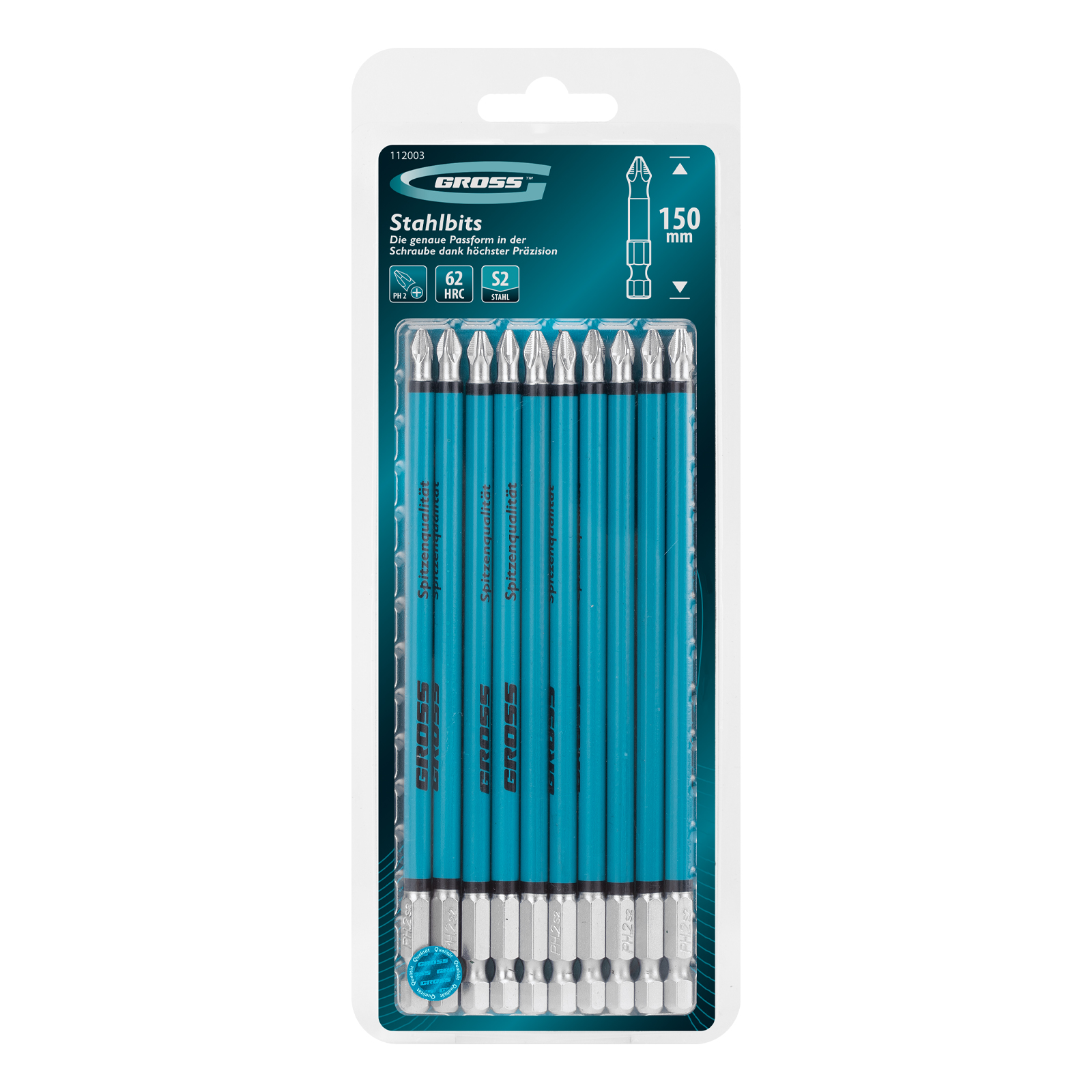 Набор односторонних бит Gross 112003 — это 10 сменных насадок PH2 x 150 мм из стали S2, с круглым профилем, крестообразными шлицами и шестигранными хвостовиками 1/4″, предназначенные для работы с шуруповертом. Профессиональная оснастка обеспечивает быстрый монтаж и демонтаж резьбовых соединений с углублением PH2.