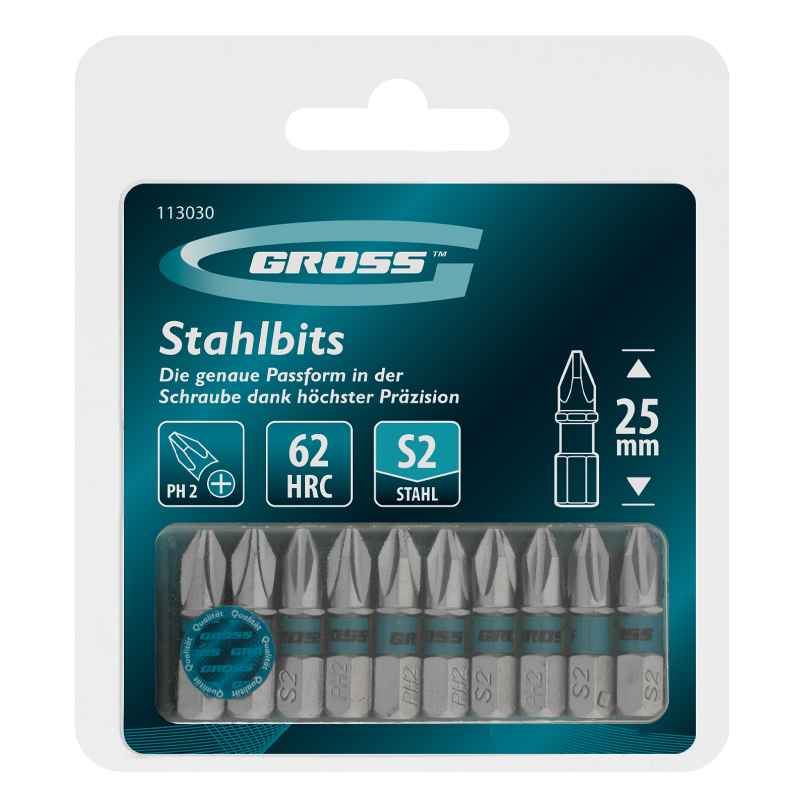 Биты PH2 х 25 мм Gross 113030 с шестигранным хвостовиком 1/4″, из стали S2, используются с шуруповертами и отвертками-адаптерами. Благодаря оптимальной геометрии и высокой точности исполнения шлица оснастка не проскальзывает в головке крепежа. Биты используются для работы с саморезами по дереву, шурупами и другим резьбовым крепежом.