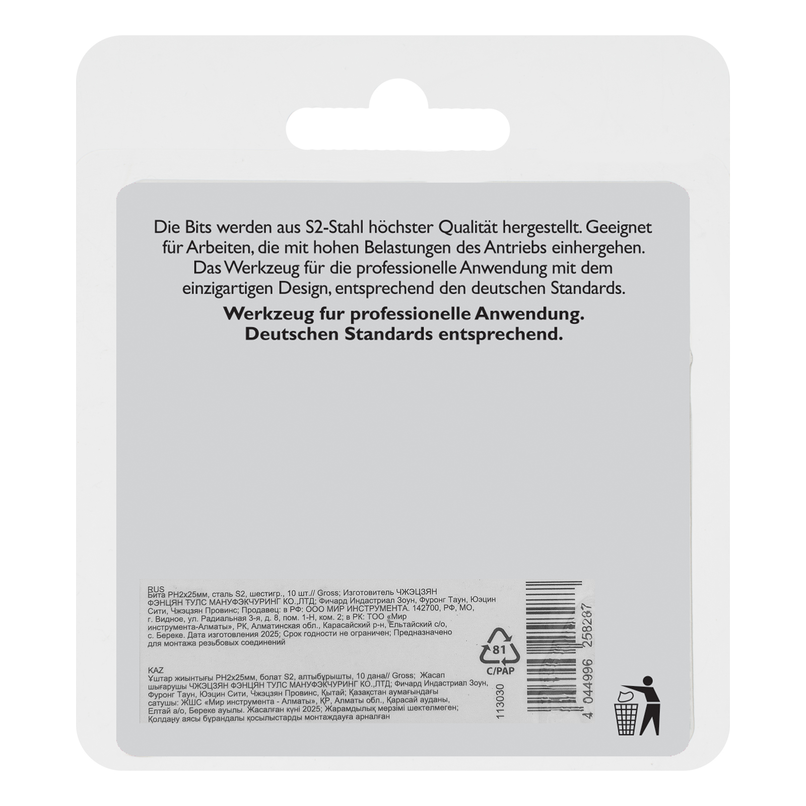 - Удобная упаковка — оснастка поставляется в жестком блистере с европодвесом, 10 штук хватит на целую бригаду.