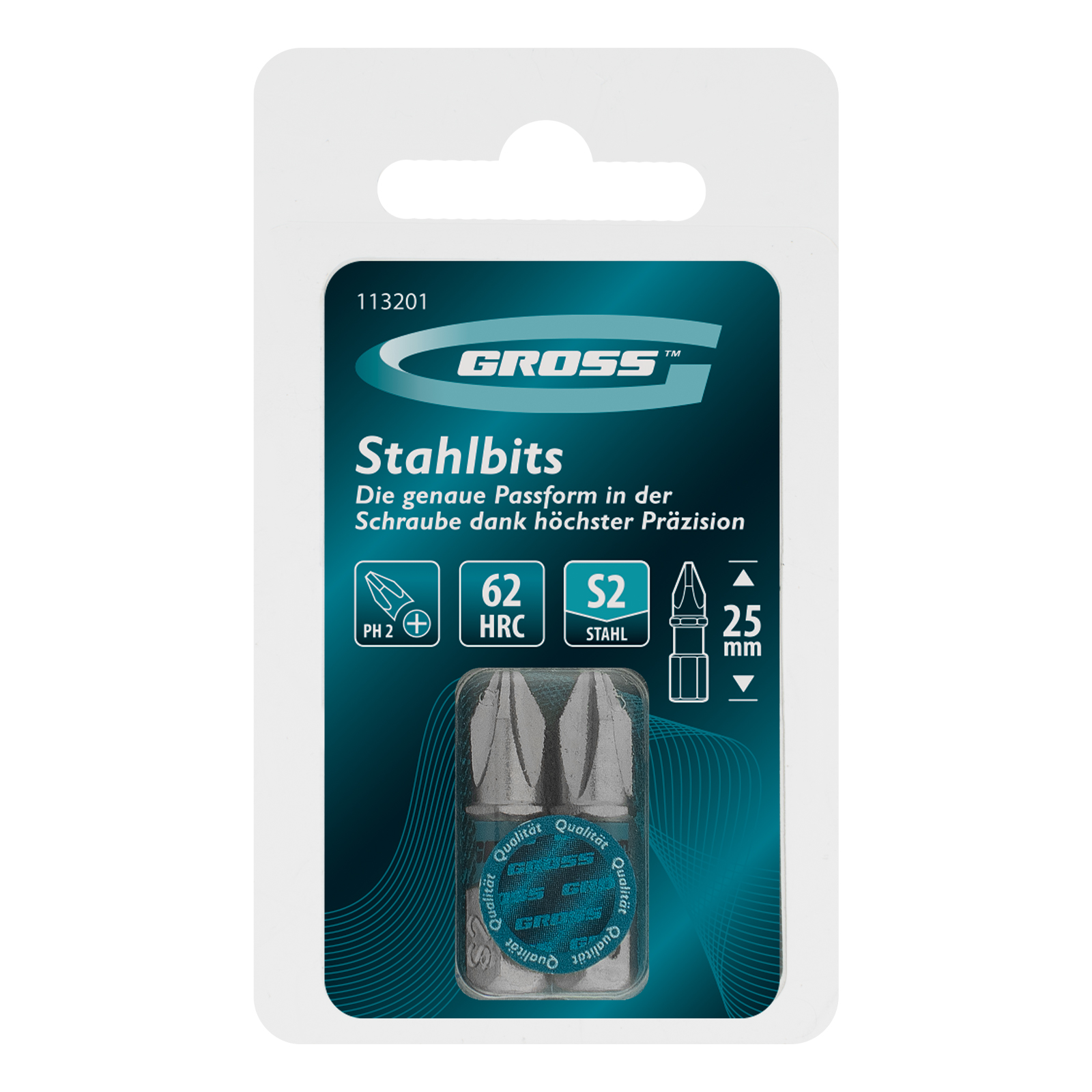 Биты PH2 х 25 мм Gross 113201 с шестигранным хвостовиком 1/4″, из стали S2, используются с шуруповертами и отвертками-адаптерами. Благодаря оптимальной геометрии и высокой точности исполнения шлица оснастка не проскальзывает в головке крепежа. Биты предназначены для работы с саморезами по дереву, шурупами и другим резьбовым крепежом.