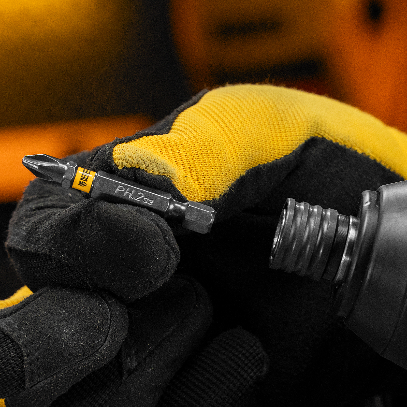 - Высокая результативность даже в ограниченном пространстве — благодаря удлиненному до 50 мм профилю битами удобно работать в труднодоступных местах