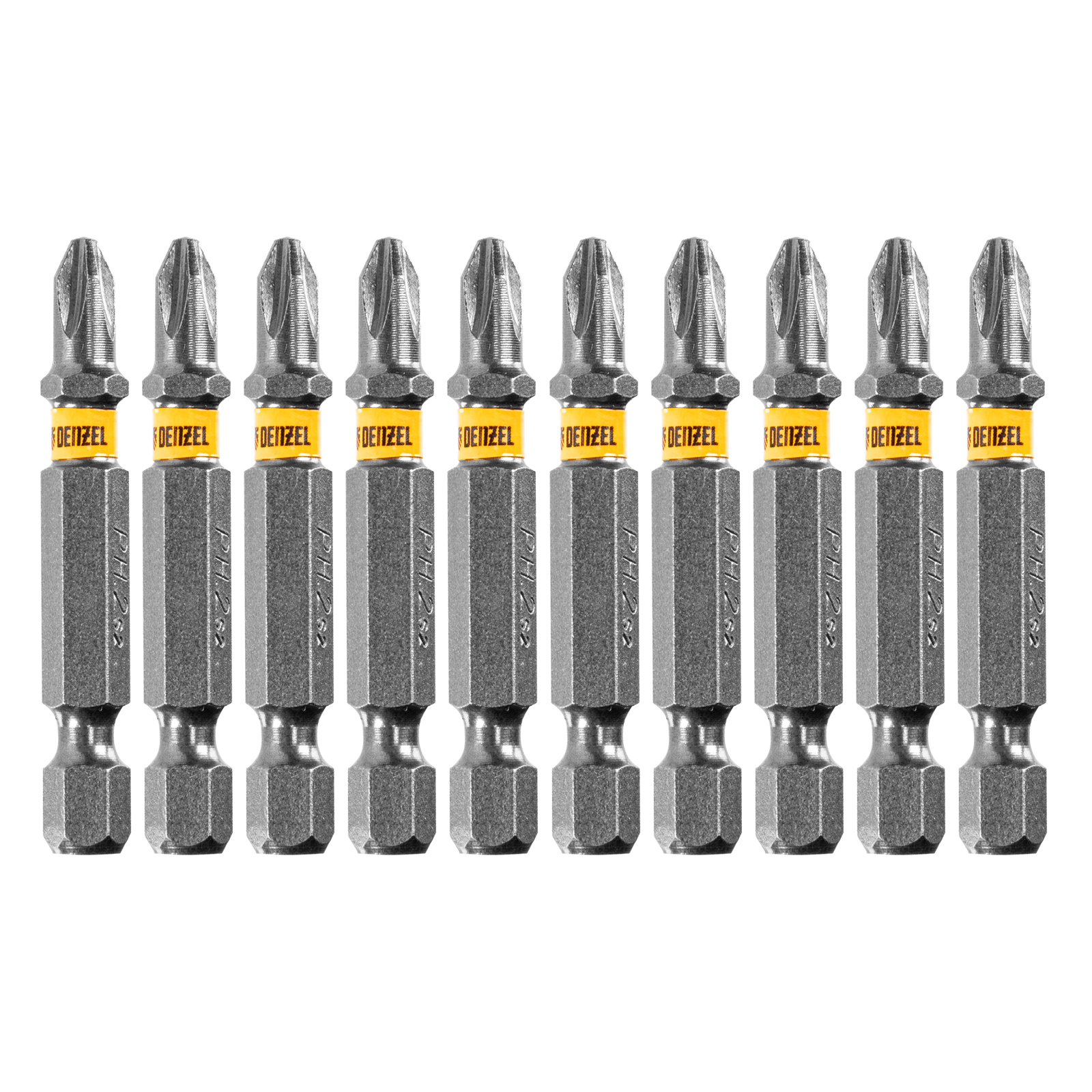 Набор бит PH2 x 50 мм Denzel 11683, поставляющийся в пластиковой коробке, состоит из 10 сменных насадок из стали S2, с крестообразными шлицами и шестигранными хвостовиками 1/4". Оснастка используется при работе шуруповертом, подходит для профессионального применения. Биты обеспечивают быстрый монтаж и демонтаж резьбовых соединений с углублением PH2.