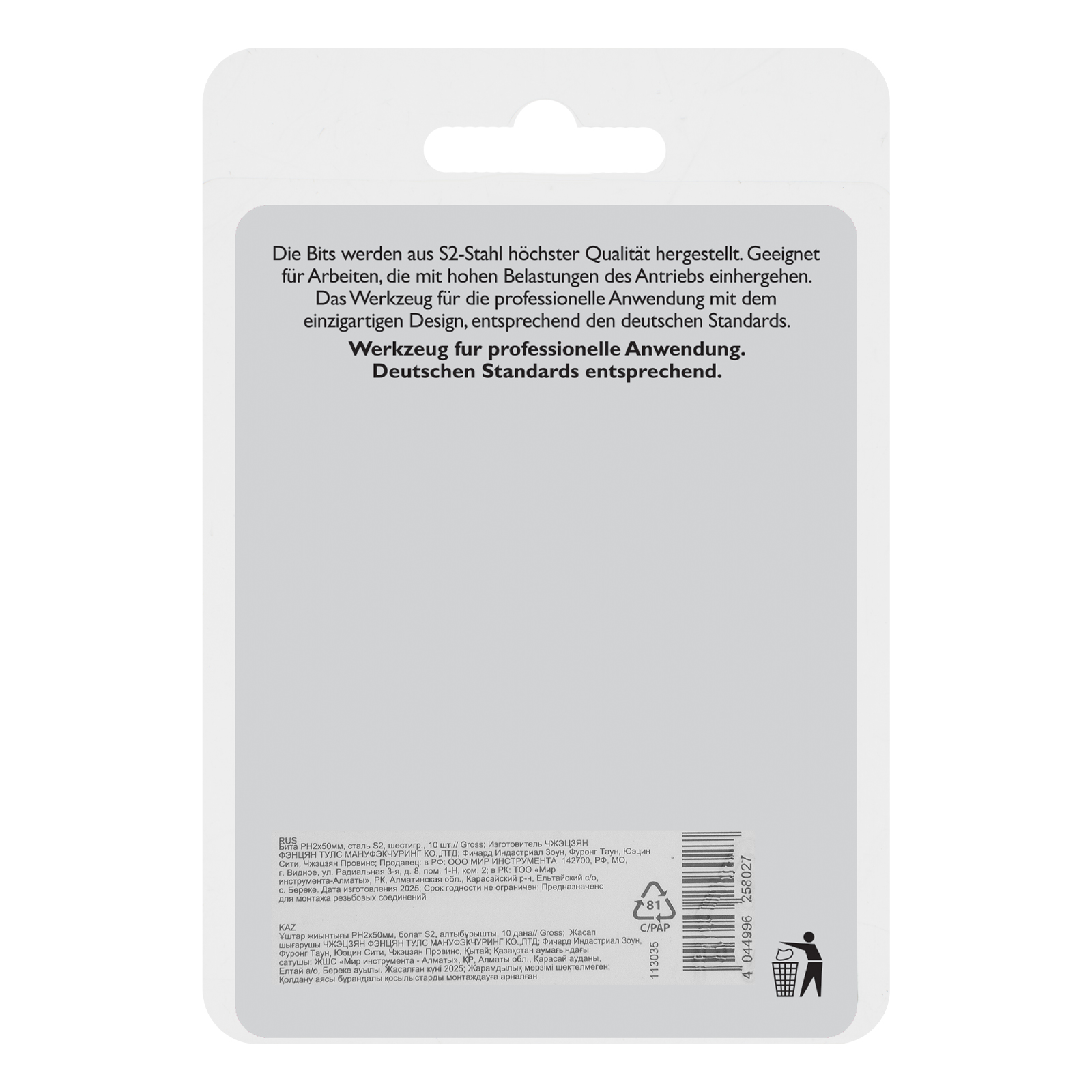 Биты PH2 х 50 мм Gross 113035 с шестигранным хвостовиком 1/4″, из стали S2, используются с шуруповертами и отвертками-адаптерами. Благодаря оптимальной геометрии и высокой точности исполнения шлица оснастка не проскальзывает в головке крепежа. Биты используются для работы с саморезами по дереву, шурупами и другим резьбовым крепежом.