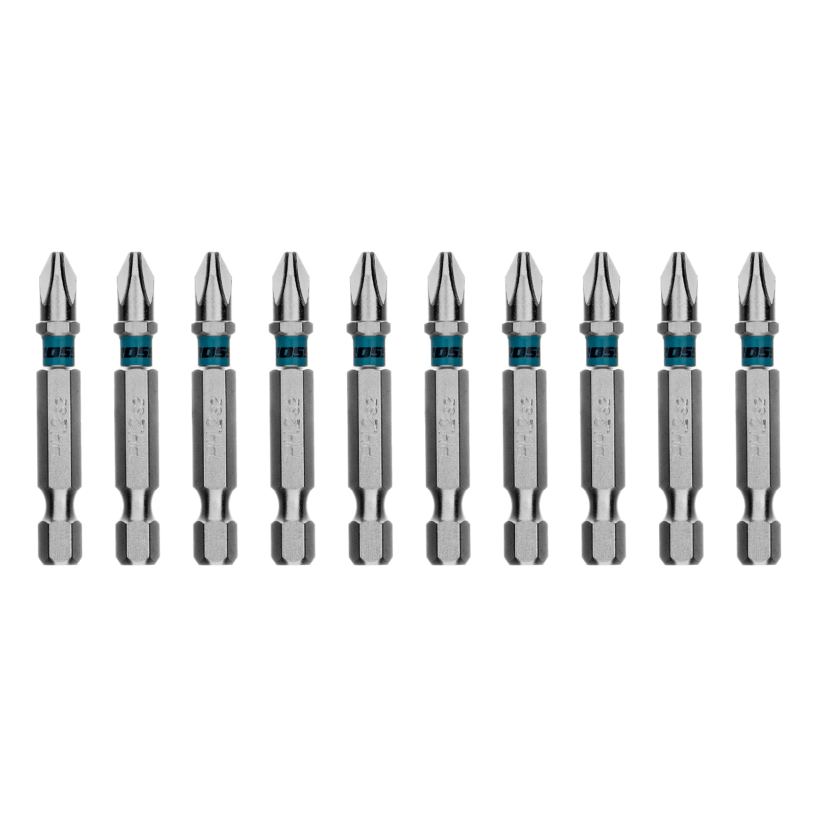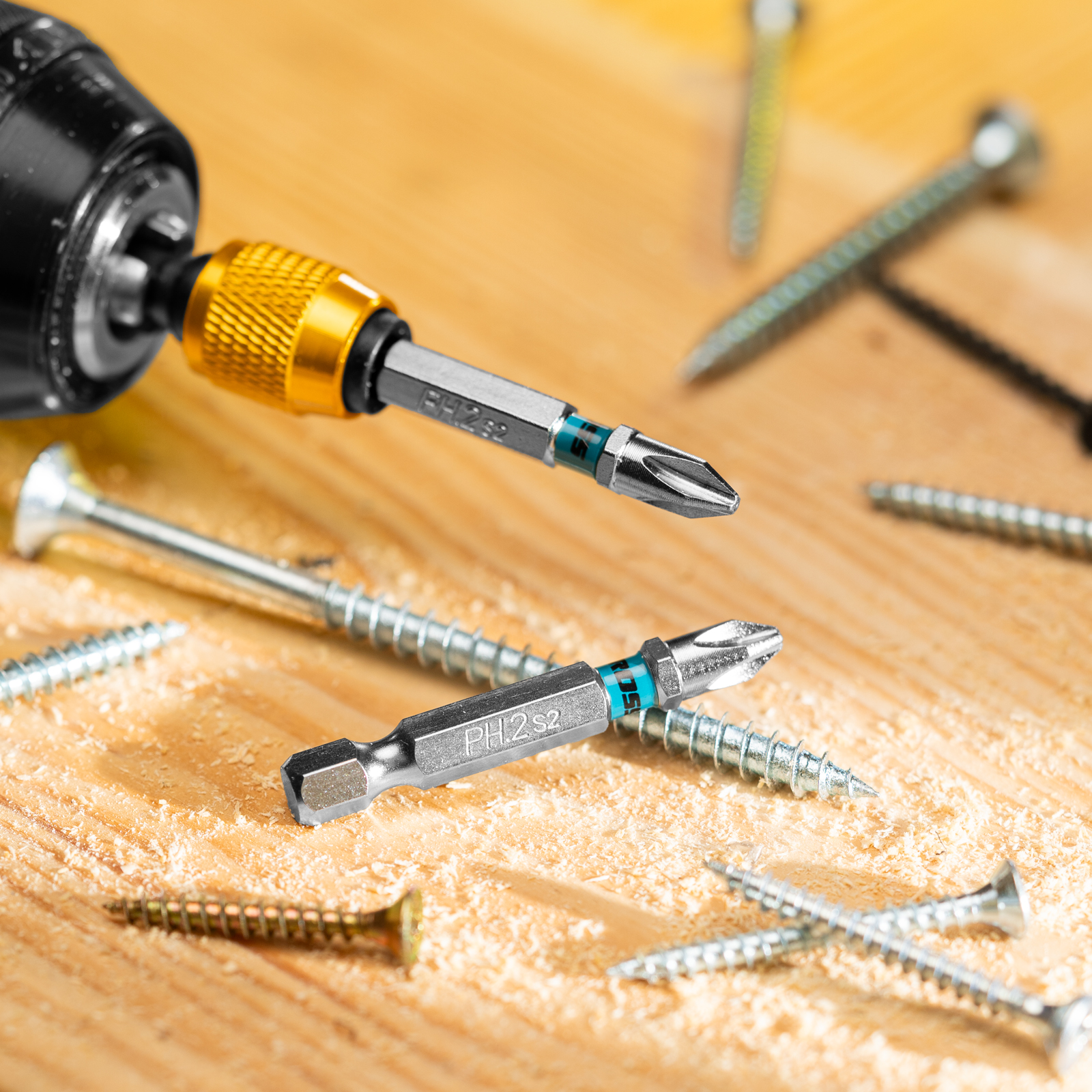 - Высокий показатель прочности — биты выполнены из японской легированной стали S2, рабочие части закалены до твердости 62 HRC.