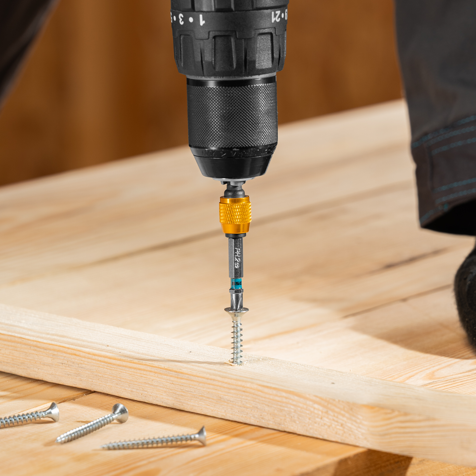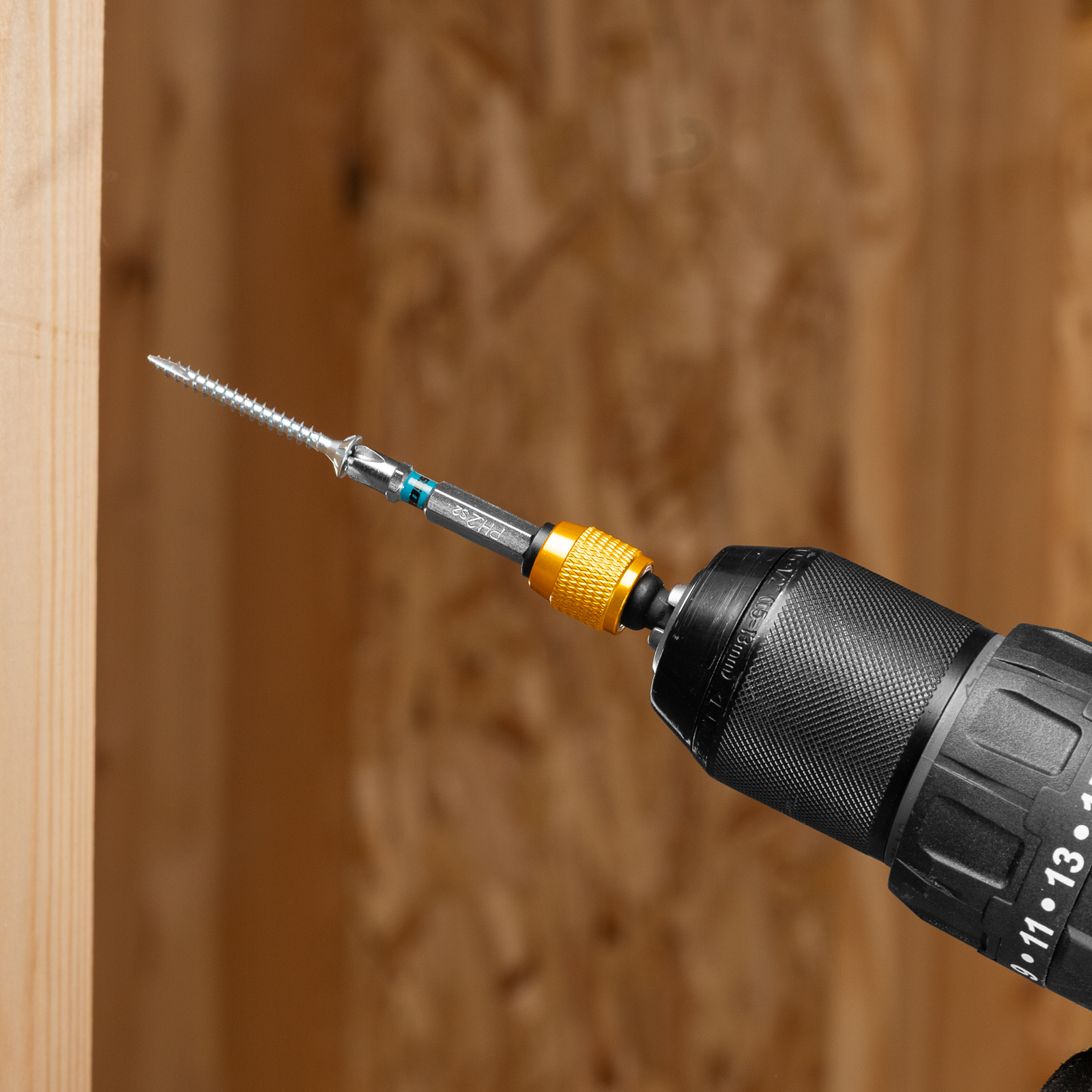 - Магнитные свойства — крепеж удерживается битой, поэтому свободной рукой можно придерживать закрепляемую поверхность.